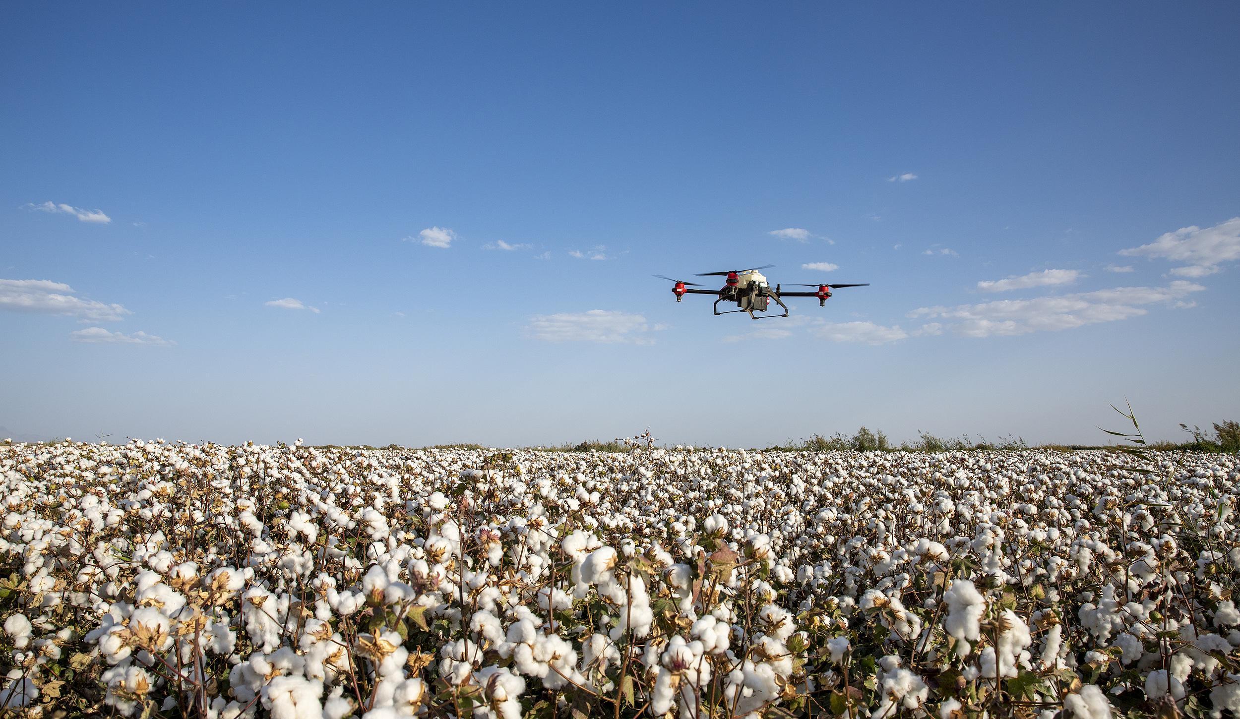 在新疆巴音郭楞蒙古自治州尉犁縣的廣袤土地上,極飛科技打造的“超級棉田”無人農場,占地3000畝,是一個集空中機器人、地面機器人、農業物聯網和智慧農場管理系統于一體的現代農業科技示范項目。