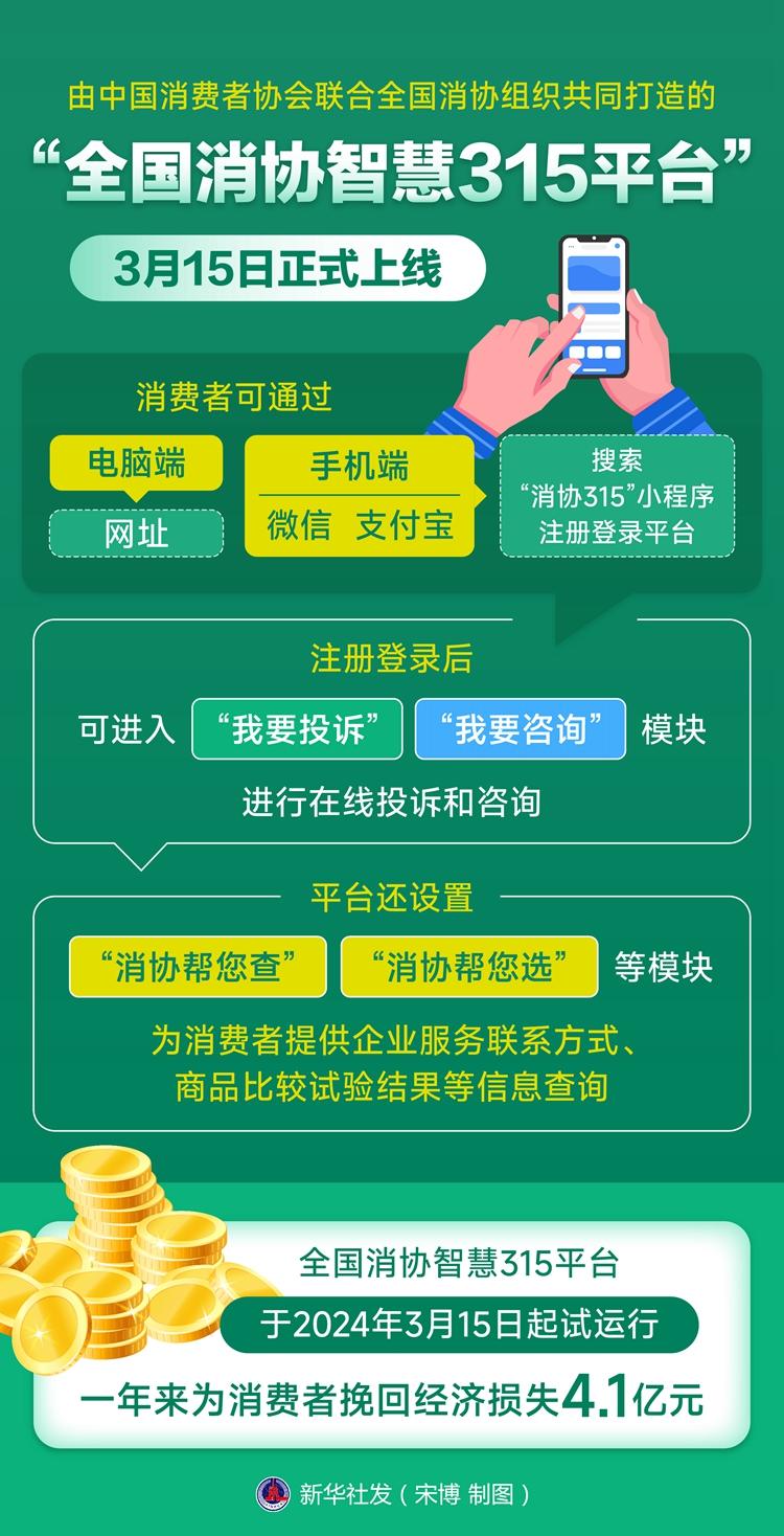 由中國消費者協會聯合全國消協組織共同打造的“全國消協智慧315平臺”3月15日正式上線。