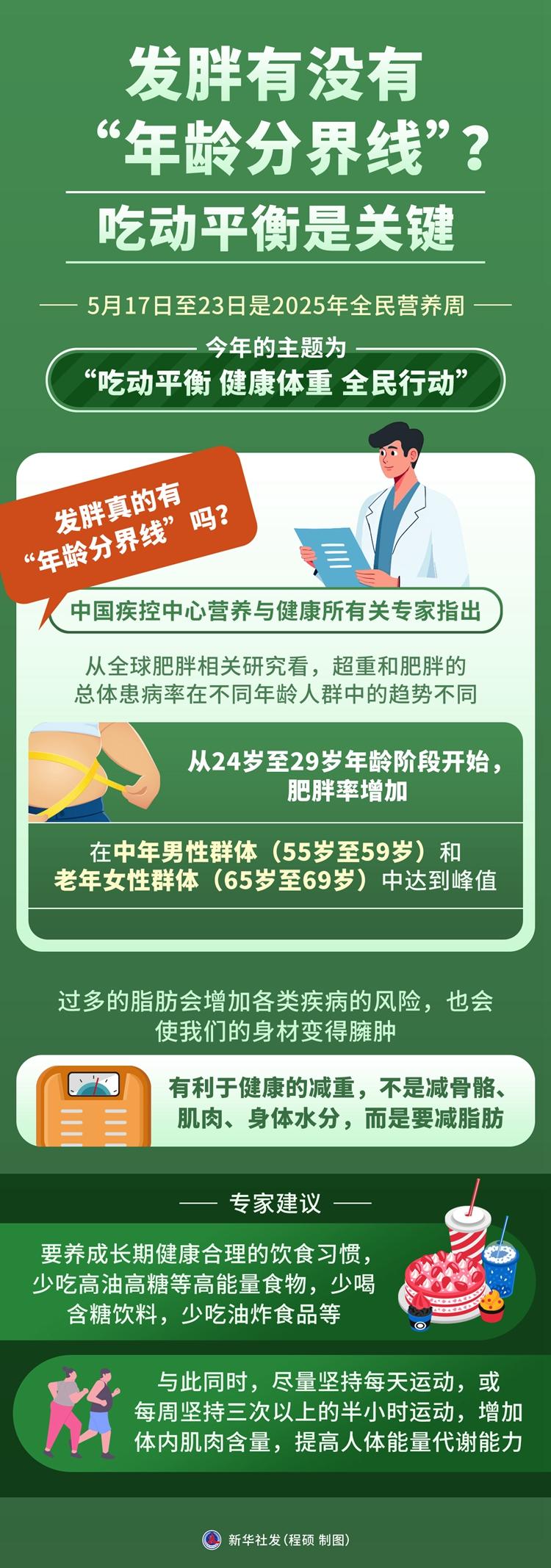 5月17日至23日是2025年全民營(yíng)養(yǎng)周,今年的主題為“吃動(dòng)平衡 健康體重 全民行動(dòng)”。根據(jù)中國(guó)疾控中心近日發(fā)布的健康科普,隨著年齡增長(zhǎng),人體基礎(chǔ)代謝率下降,應(yīng)通過(guò)合理飲食和堅(jiān)持運(yùn)動(dòng)相結(jié)合,長(zhǎng)期控制好體重。