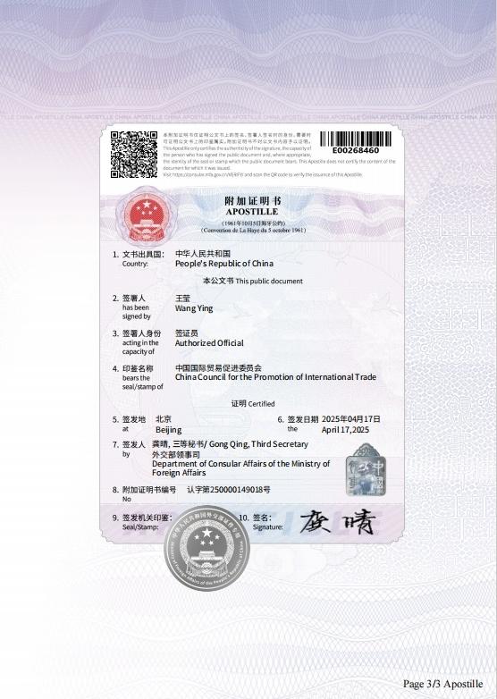 為適應文書流轉電子化趨勢,提高文書跨境流轉效率,推動“高效辦成一件事”,外交部作為我國簽發《取消外國公文書認證要求的公約》規定的附加證明書的主管機關,將開始為我國境內出具的公文書簽發電子附加證明書。作為試點,將自2025年6月18日起,為中國國際貿易促進委員會出具的原產地證書簽發電子附加證明書。