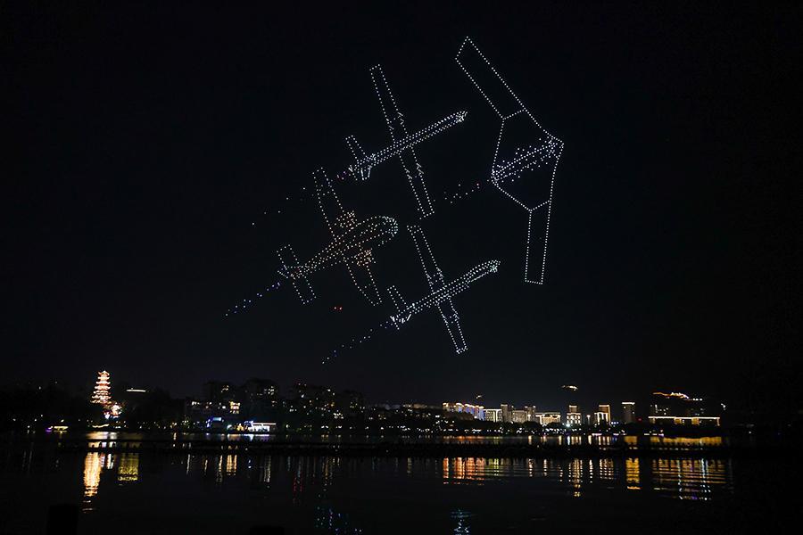 在這場表演中,深圳大漠大智控技術有限公司的11787架無人機,以“最多無人機組成的空中圖案”創下吉尼斯世界紀錄。