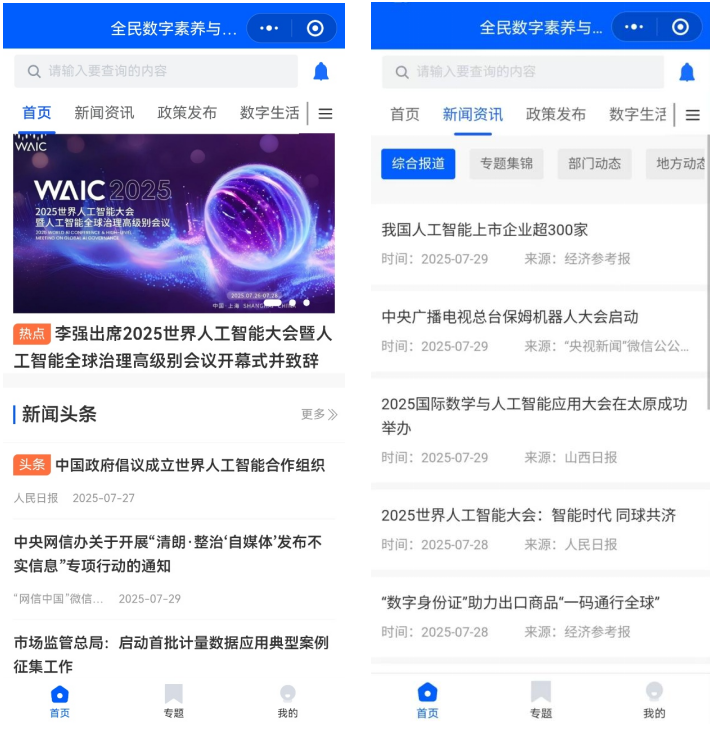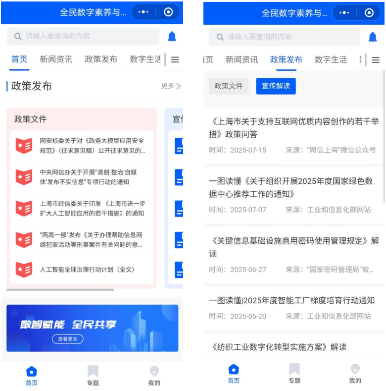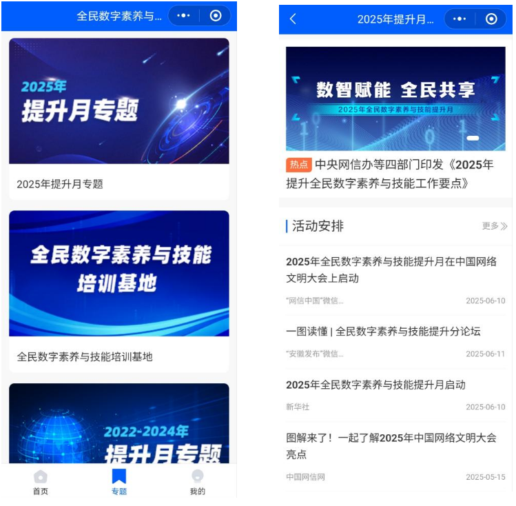 在小程序專題版塊可點擊查看全民數(shù)字素養(yǎng)與技能提升相關專題。