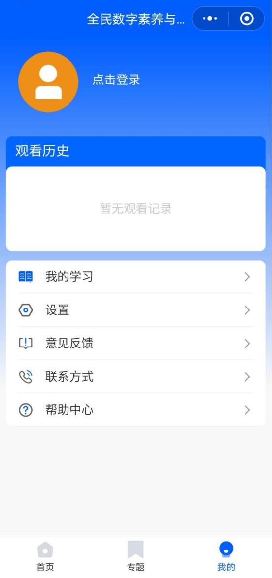 在小程序“我的”版塊可進行個性化設置,也可查看觀看歷史、我的學習等相關情況。