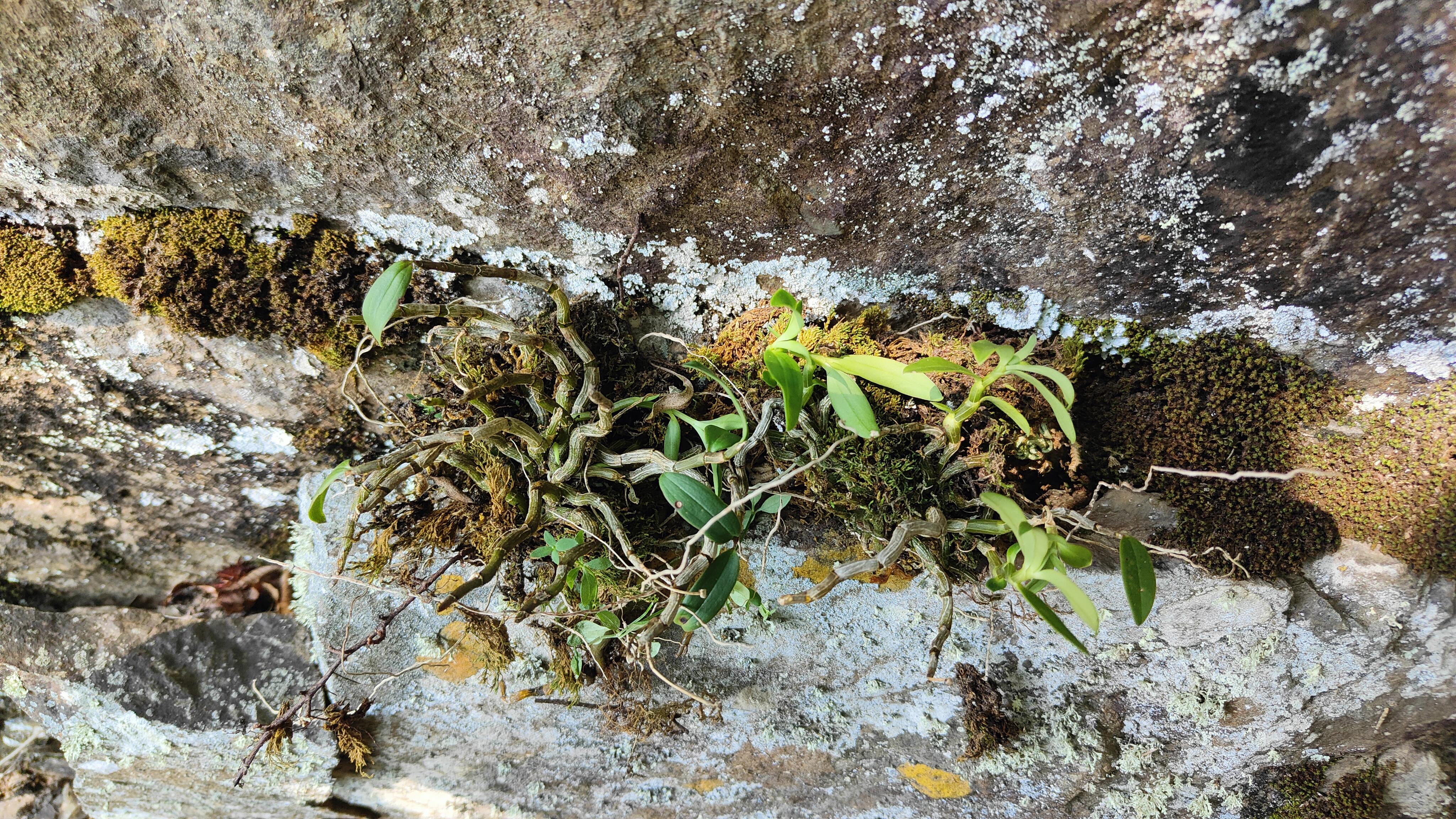 據(jù)明興加介紹,曲莖石斛生長于海拔600-2400米,多見于半陰半晴的懸崖峭壁,自然授粉率很低,株叢生長十分緩慢。嚴苛的生長環(huán)境和以往的過度采集,導致曲莖石斛資源稀缺,很難被找到。