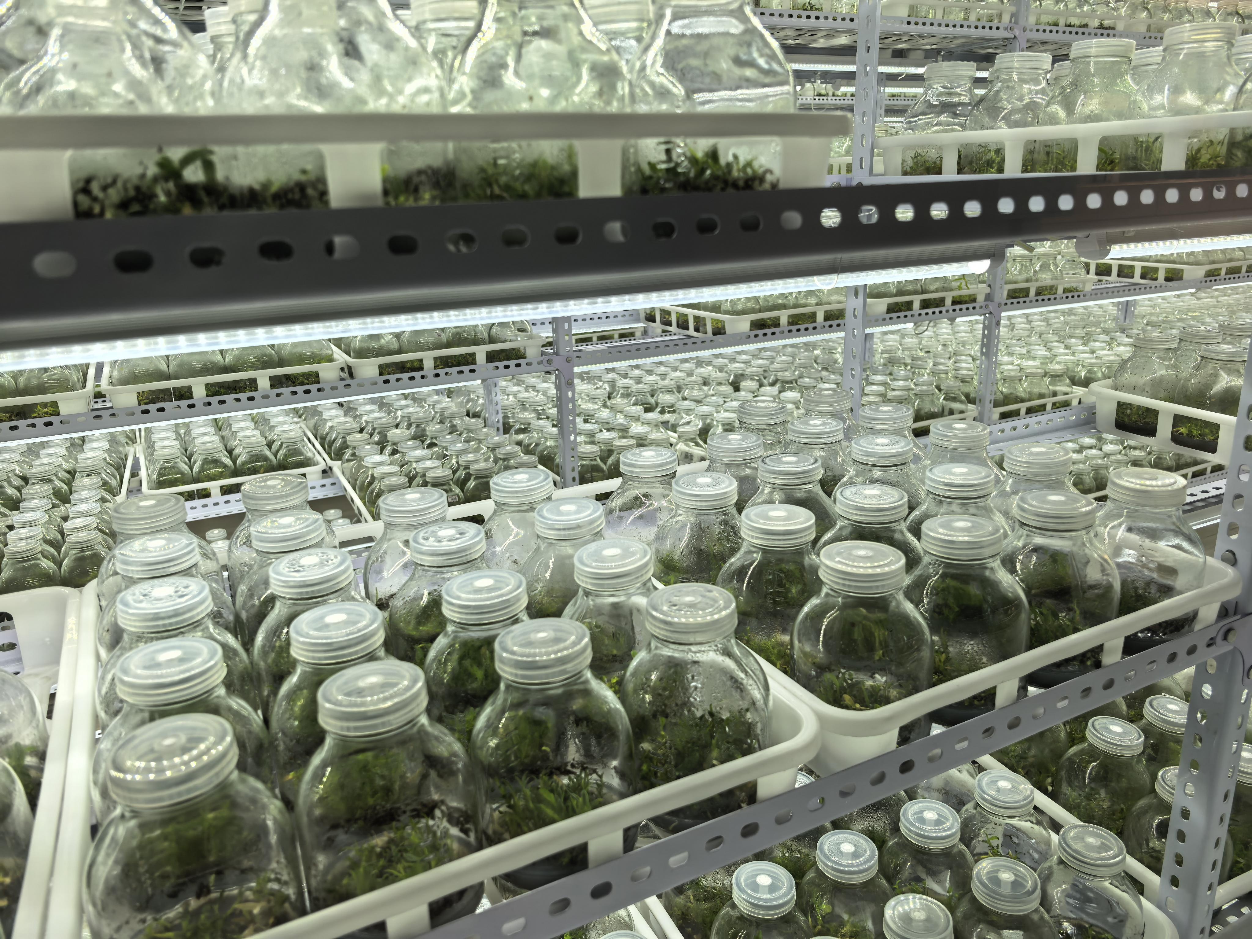 為了讓人工培育的“金釵”種苗在野外生長,研發(fā)團隊采用了大棚馴化的方式,即把在組培室培養(yǎng)了1年的瓶苗轉(zhuǎn)至大棚種植2年左右,為后續(xù)移栽至野外提供緩沖。