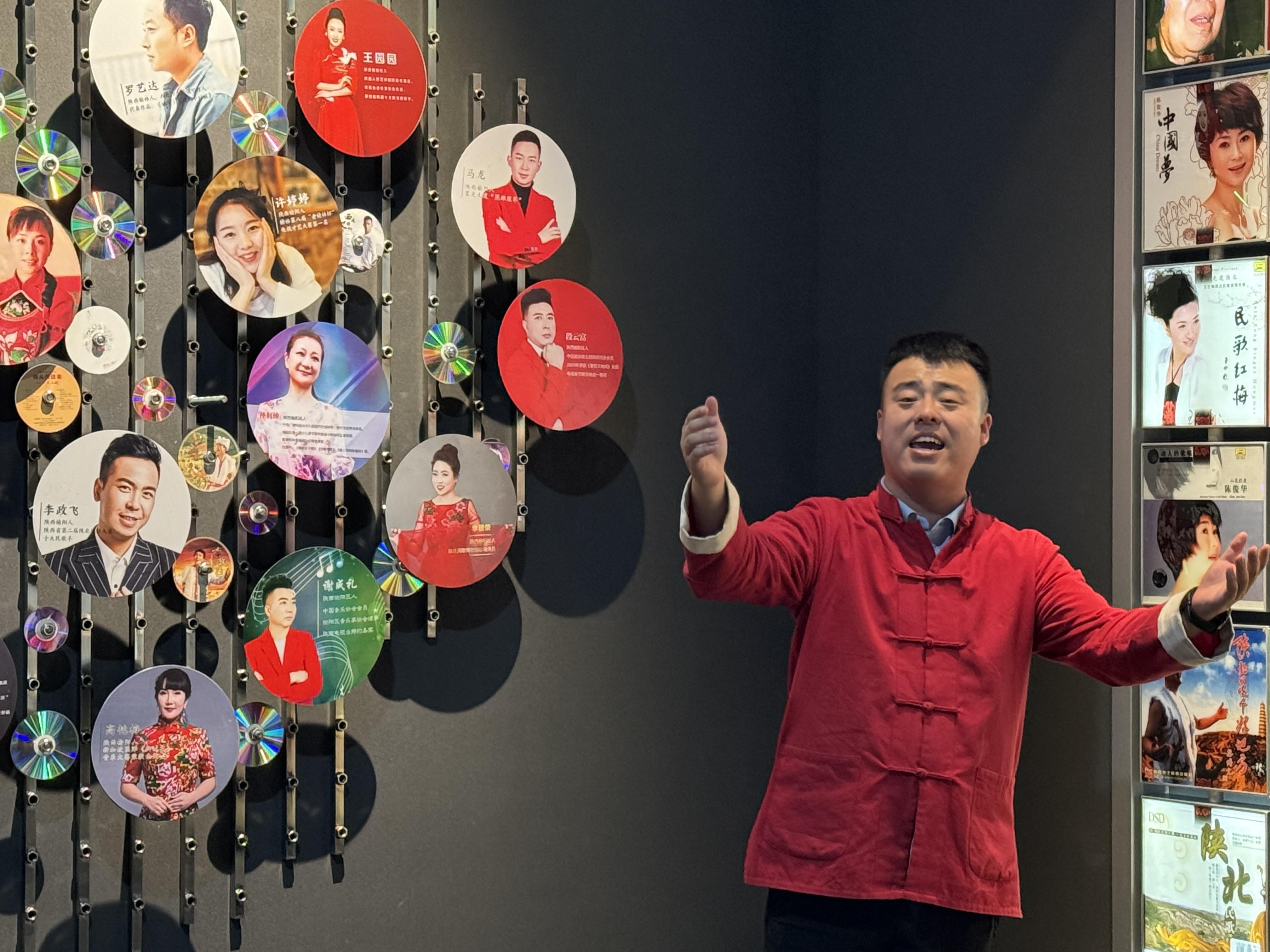 在“信天游永世唱不完”展區(qū),一面釘滿(mǎn)CD和歌手頭像的螺釘墻,無(wú)聲地訴說(shuō)著傳承的故事。呼高軍表示,正是這種可聽(tīng)、可看、可觸摸、可參與的沉浸式體驗(yàn),讓民歌不再是遙遠(yuǎn)的歷史回響,轉(zhuǎn)而成為切實(shí)可感的當(dāng)下情感。