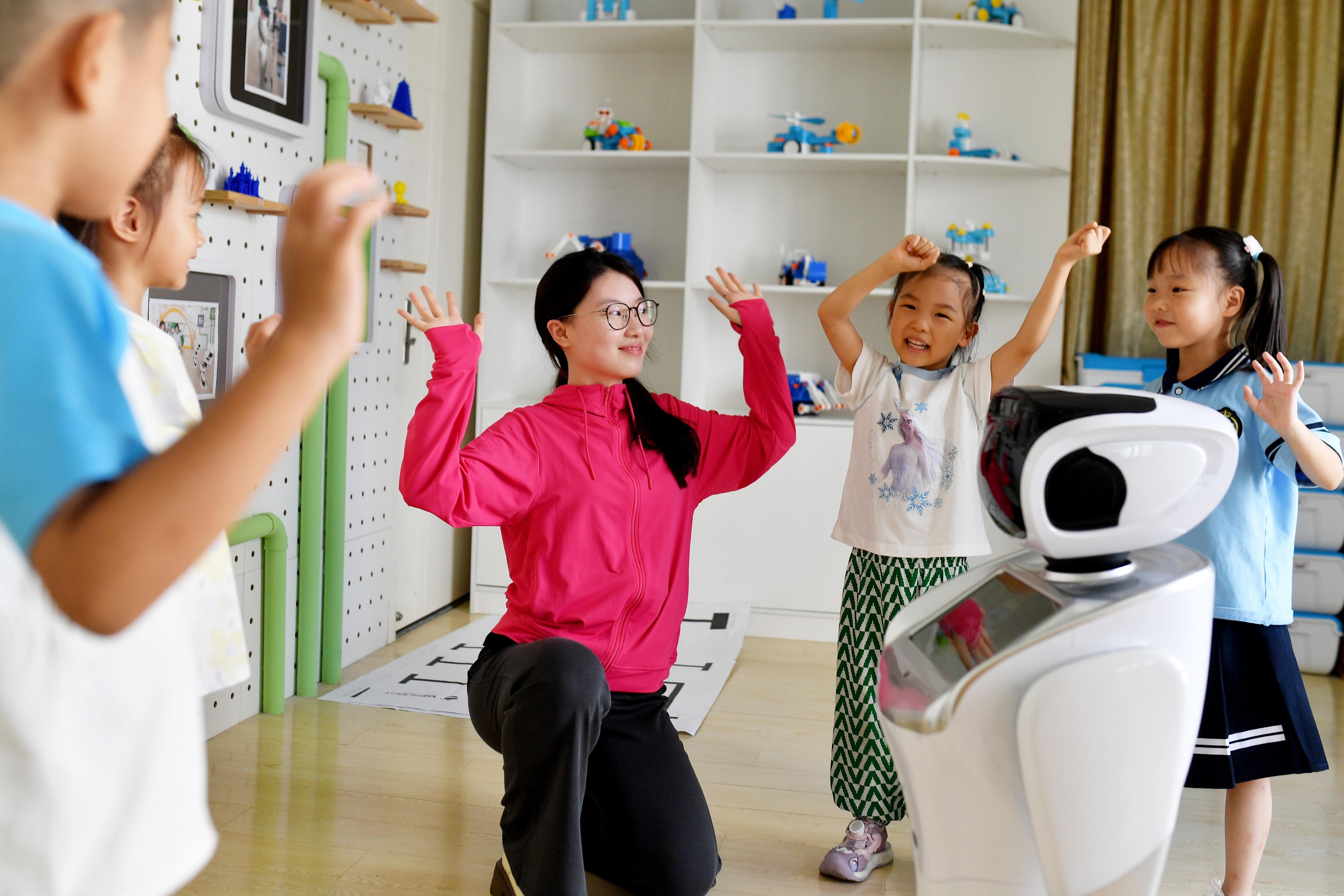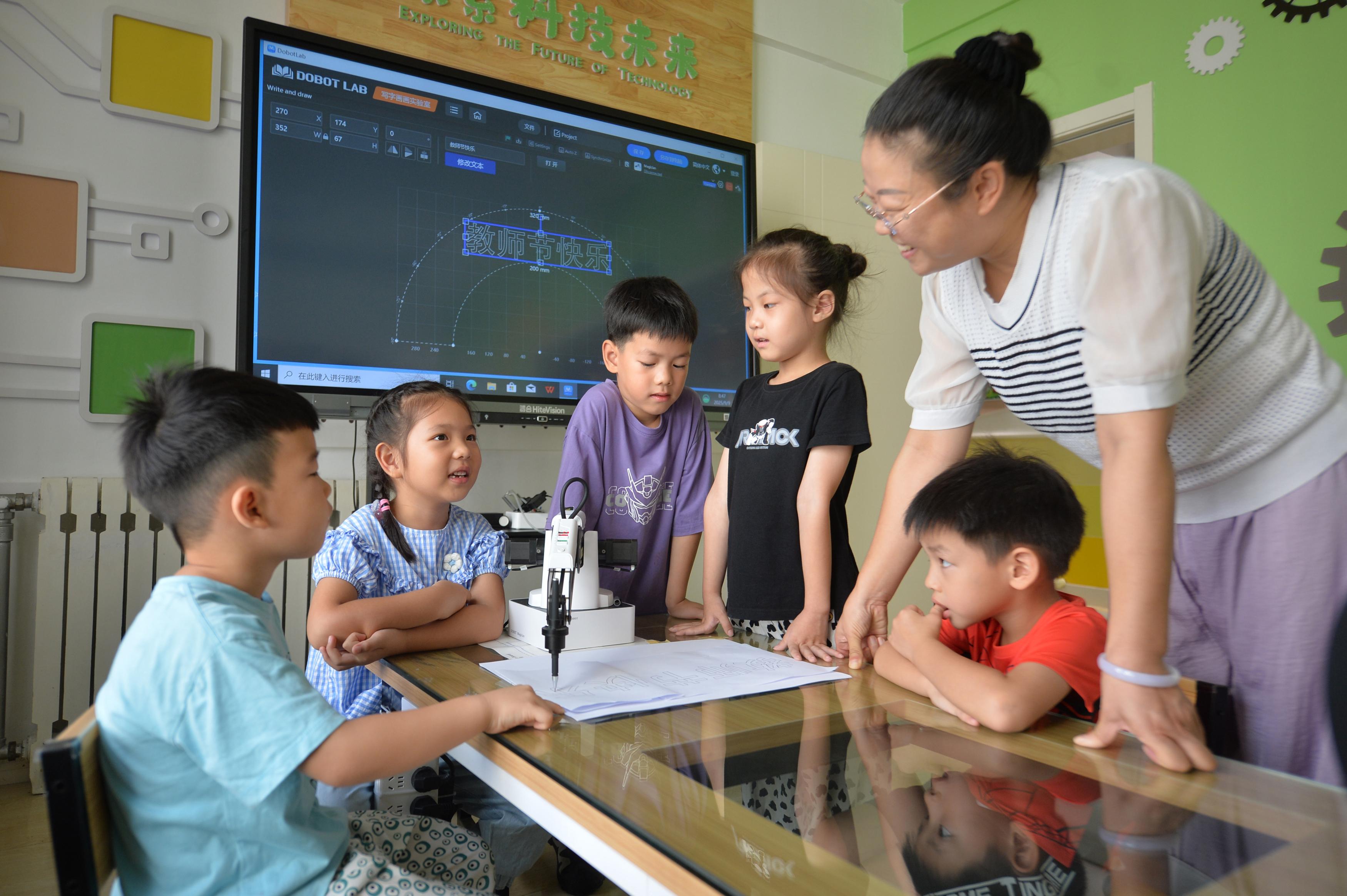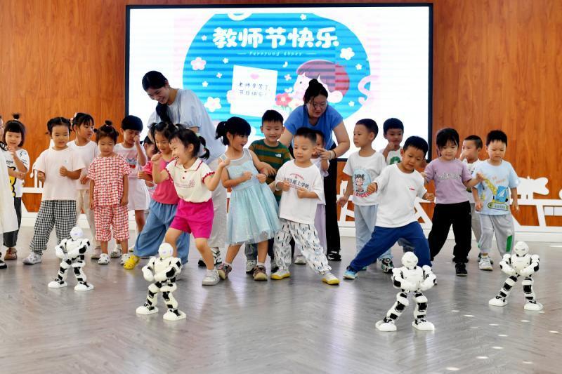 9月9日,青島市市北區(qū)寶城幼兒園舉行“趣味科普”主題活動(dòng)。在老師的指導(dǎo)下,孩子們與機(jī)器人互動(dòng)舞蹈、了解教育機(jī)械臂書寫功能,在歡笑中喜迎教師節(jié)的到來。