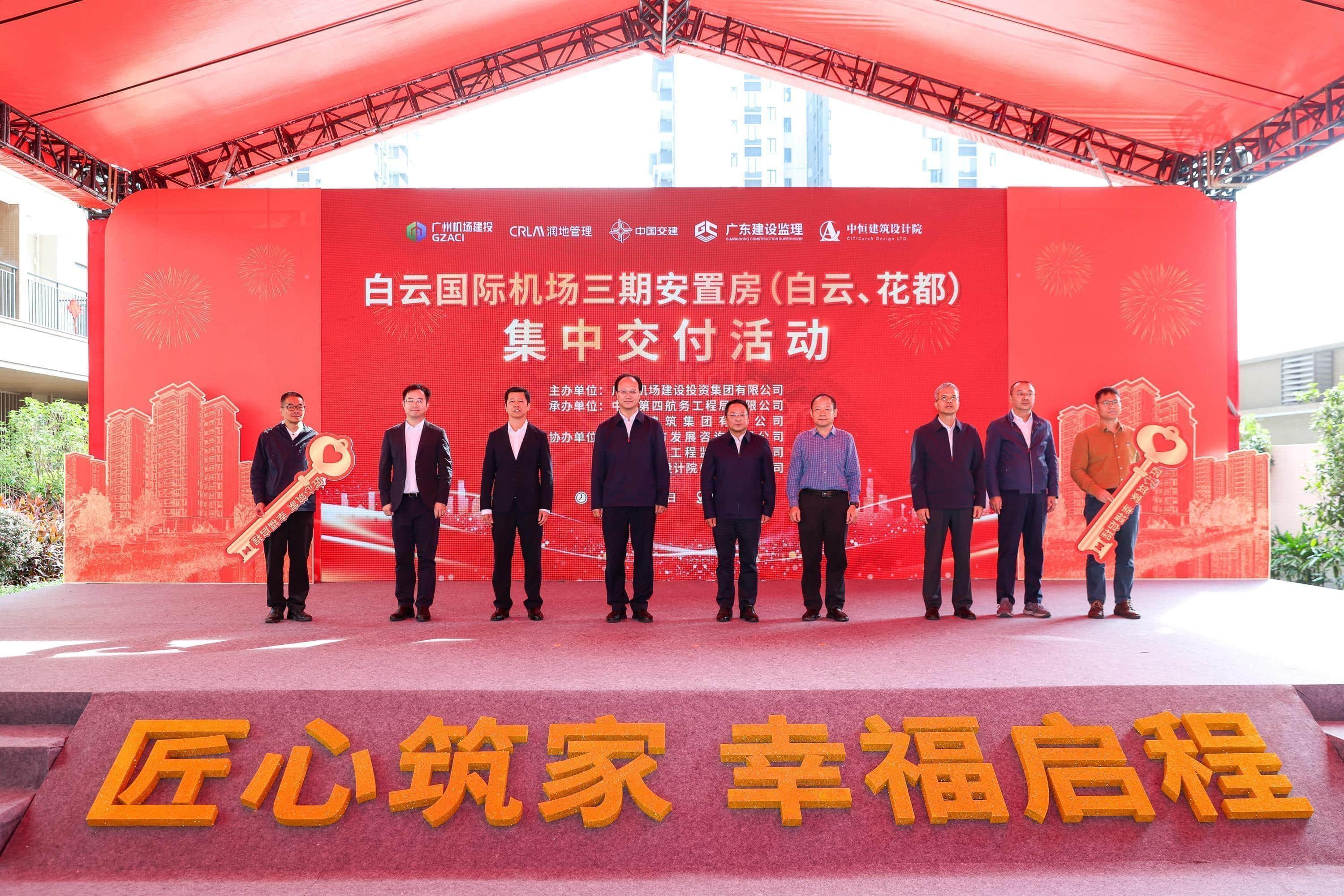 記者獲悉,白云機場三期擴建工程安置區項目近日在中交第四航務工程局有限公司(以下簡稱中交四航局)參建的機場三期小?-平山二期(首批)安置區舉行集中交付活動。此次集中交付包括花都、白云兩區的300棟共27781套安置房,回遷群眾喜提“金鑰匙”。