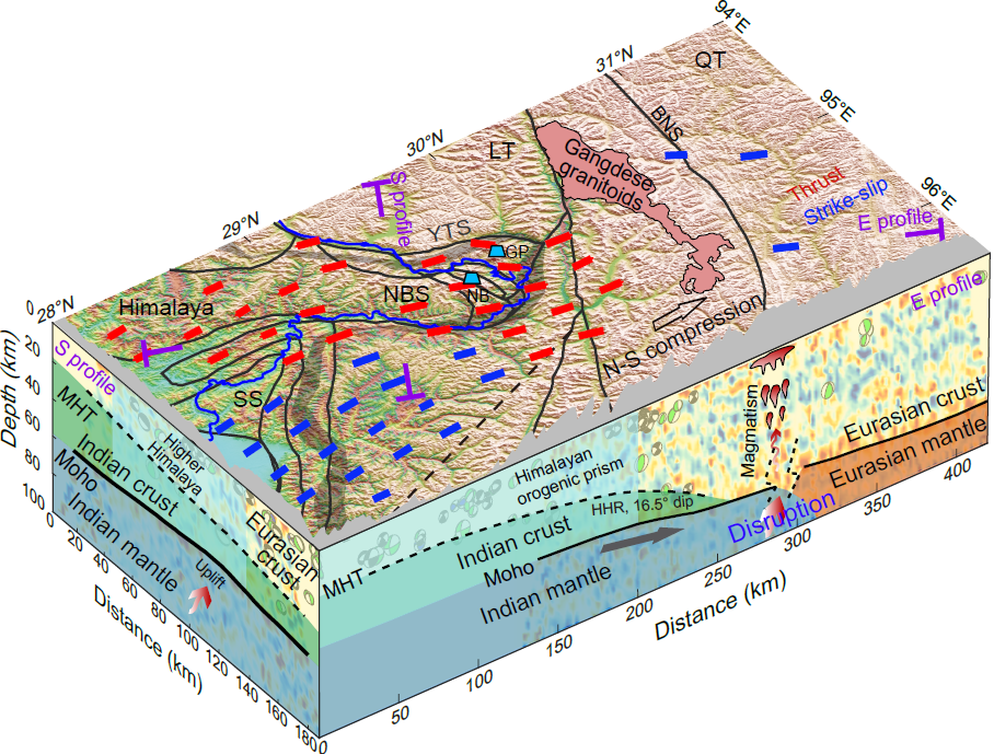 “這些發現共同揭示,印度板塊的低角度俯沖以及由此引發的地殼強烈縮短擠壓,是驅動喜馬拉雅東部地震發生與地表持續抬升的關鍵因素。”論文第一作者兼通訊作者、中國科學院青藏高原研究所研究員白玲說,“我們還對比了喜馬拉雅不同段落的構造特點,發現喜馬拉雅東段與尼泊爾地區的地下結構較為相似,但明顯不同于喜馬拉雅西段或緬甸山弧的深俯沖模式。”