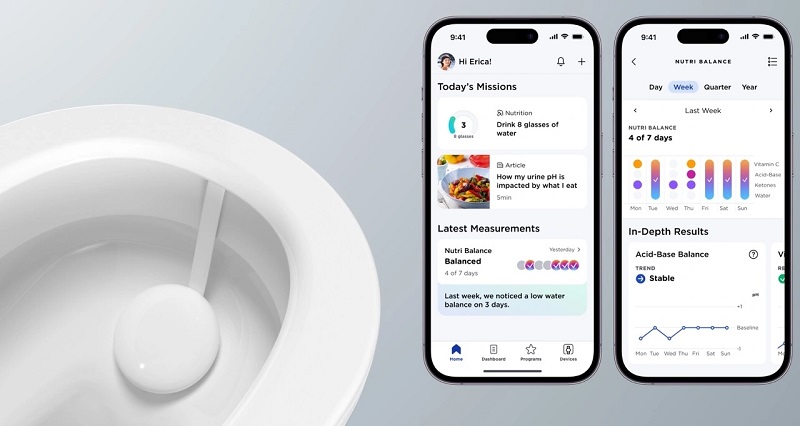 Withings表示,尿液中含有3000多種代謝物,可以立即反映人體的平衡和健康狀況。而該裝置可以通過檢測黃體生成素和pH值水平來跟蹤女性每月的荷爾蒙變化,并將檢測結果同步到手機App上。這些測量結果的結合可以幫助人們監測身體代謝,以優化他們的日常水分和營養攝入量。它還可以為用戶推薦鍛煉計劃,提供飲食建議。