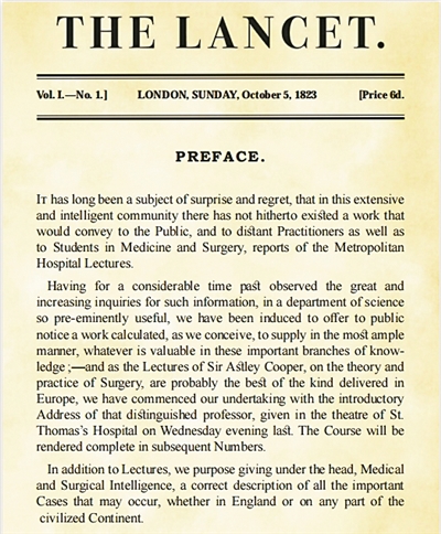 托馬斯·威克利于1823年創(chuàng)辦《柳葉刀》(The Lancet),希望通過促進醫(yī)學研究與科學發(fā)展,來解決醫(yī)務工作者在獲取醫(yī)學知識方面的不平等問題。因此,《柳葉刀》不僅僅是一本醫(yī)學期刊。兩個世紀以來,世界發(fā)生了翻天覆地的變化,但《柳葉刀》始終堅持其核心使命——推動積極的社會變革。當年這一開創(chuàng)性的使命至今依然顯得十分重要。
