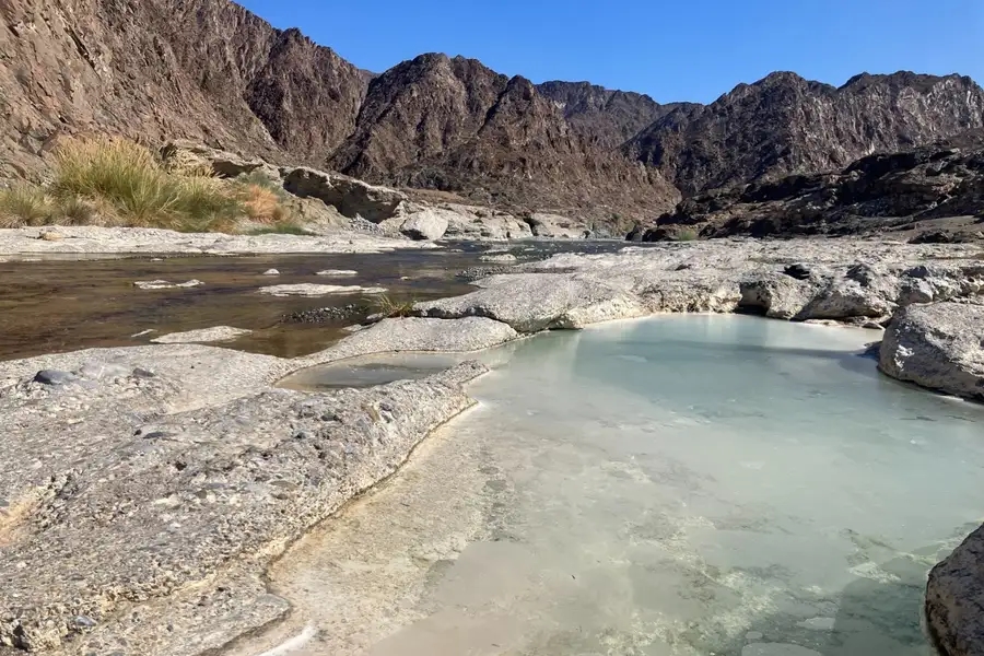 阿曼共和國哈加爾山脈的水池上覆蓋著礦物膜。
