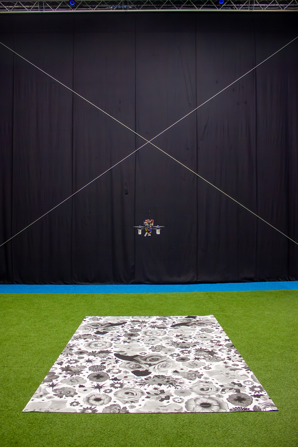 神經形態無人機飛越花朵圖案,無人機從放在角落的神經形態相機接收到視覺輸入。紅色表示像素變暗,綠色表示像素變亮。