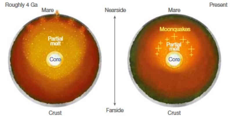 研究人員隨后模擬了月球結構,確定了這些數字可用兩個半球的月幔溫度相差100—200開爾文來解釋——正面月幔比背面月幔的溫度更高。他們提出假說,認為維持這種熱差異的可能是月球正面內部的釷和鈦的放射性衰變——可能是30億—40億年前在正面月表形成的火山活動的殘骸。