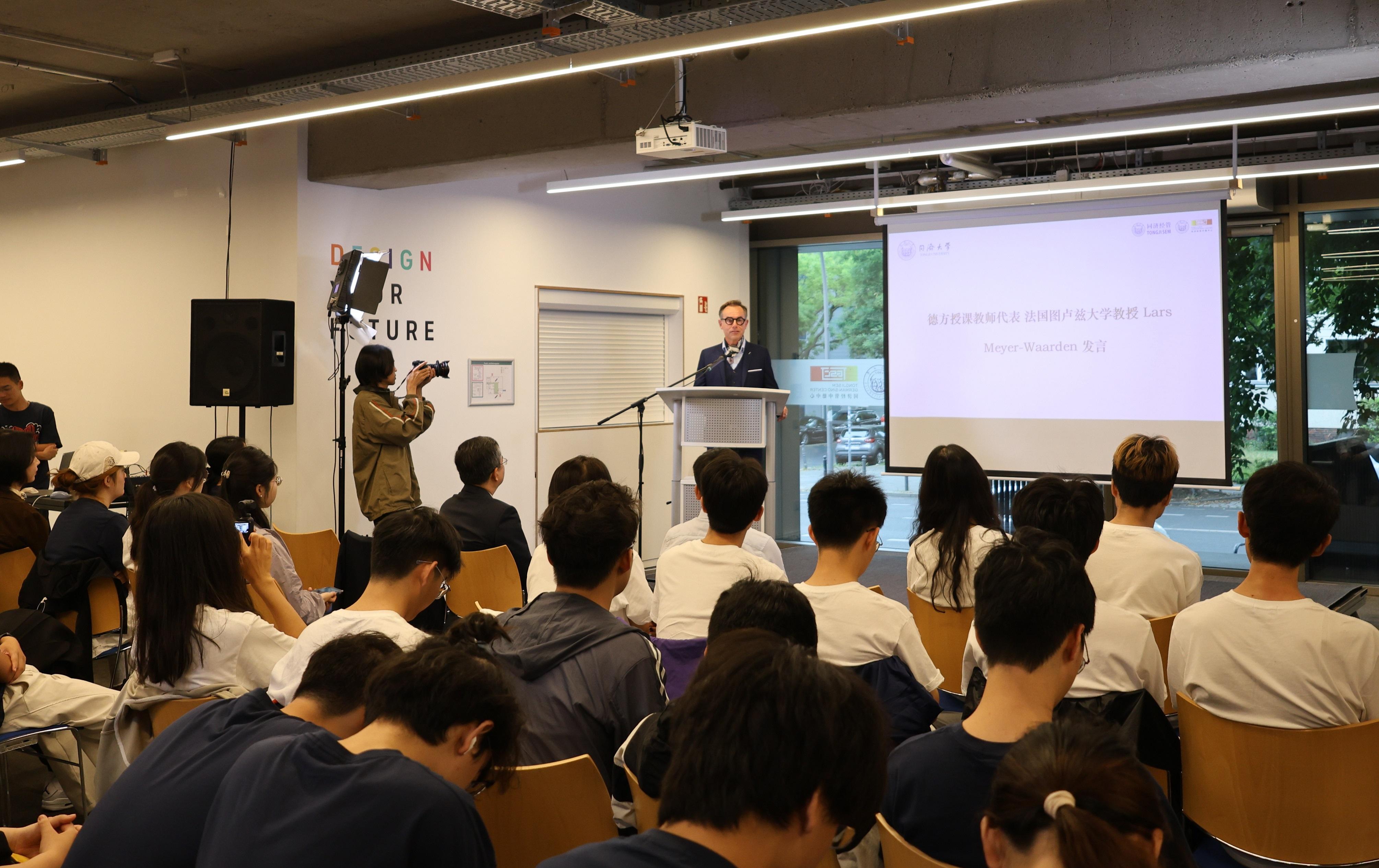 中國駐德國大使館教育處參贊周志強在致辭中表示,一個多世紀以來,同濟大學始終堅持對德合作的傳統,開創了多個中德高教合作示范項目,成為兩國教育、科技和文化交流的重要窗口和橋梁。高等教育合作是中德雙邊關系的重要組成部分。踏上德國這片土地,走近德國民眾,大家才能體會到,只有在互動和交流當中,文化的碰撞才得以更好地升華,文明的價值才得以更好地體現。青年是國家的未來,是中德友誼的橋梁,希望大家能不負韶華,勤于思考,勤于實踐,為促進中德合作、共同發展貢獻力量。