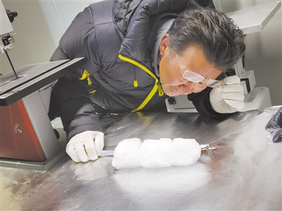 中國科學院青藏高原研究所研究員徐柏青在拉薩冰芯庫測量分析樣品。受訪者供圖