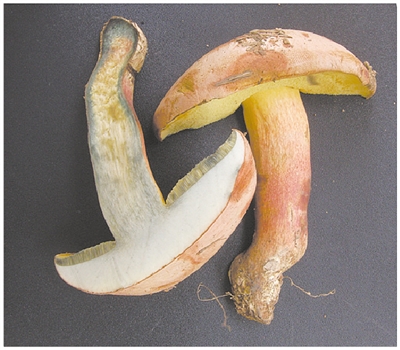 讓普大姐夫婦“中招”的見手青,民間亦稱“紅蔥”“紅見手”,菌蓋、菌桿受到機械損傷后,會緩慢變成淡藍色至淺藍色。