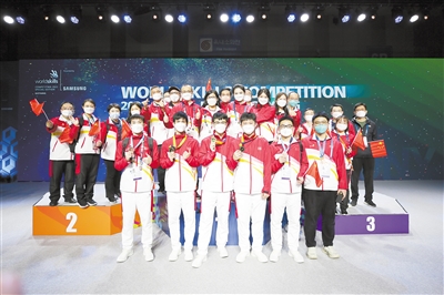 在世界技能大賽特別賽的舞臺上,中國代表團在已完賽的27個項目上,斬獲15金3銀3銅和5個優勝獎。