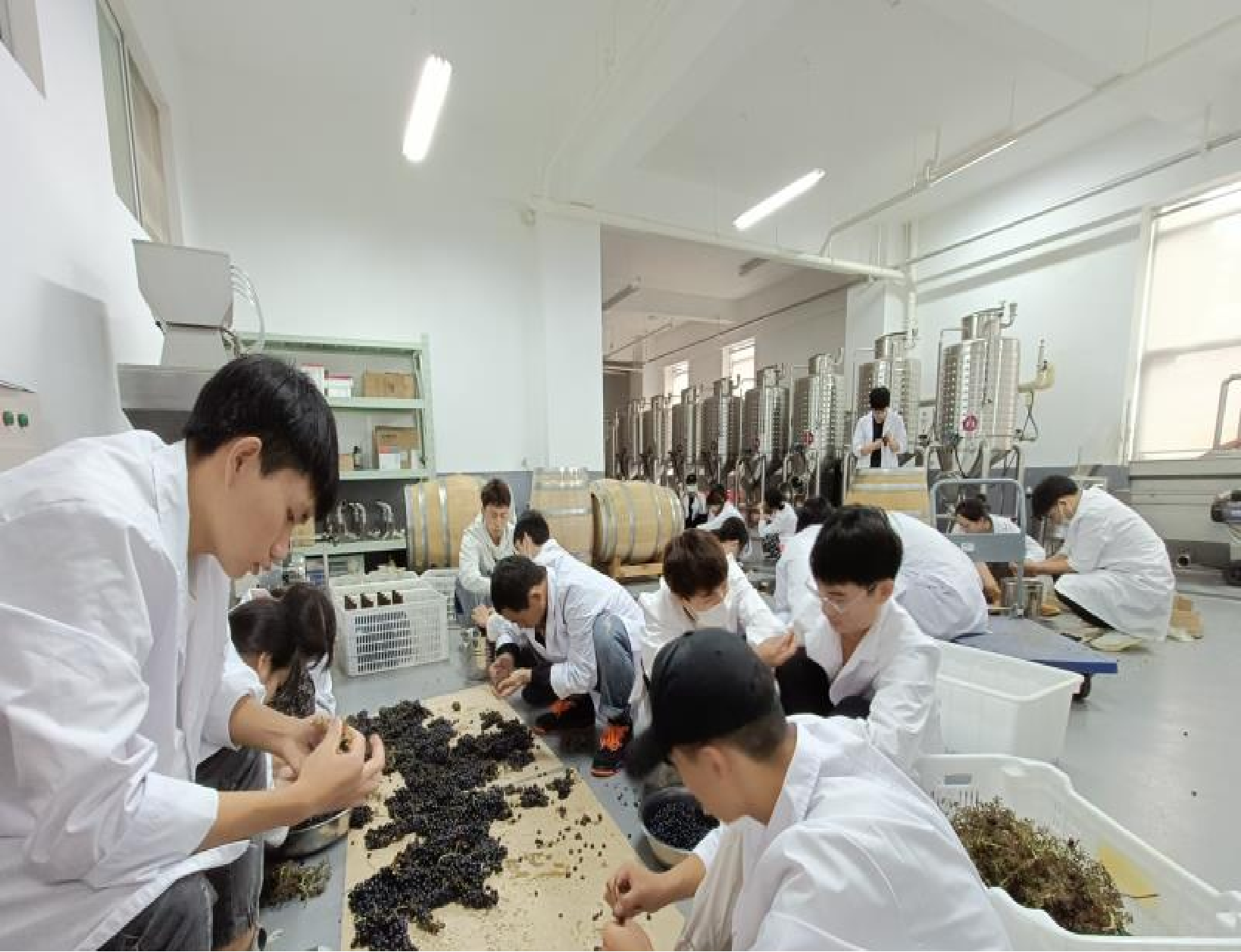 云南農業大學葡萄研究團隊研究人員正在挑選釀酒葡萄樣品。受訪者供圖