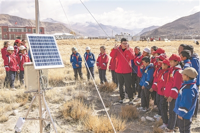 西藏日喀則市定日縣扎西宗鄉完全小學的學生在中國科學院珠穆朗瑪大氣與環境綜合觀測研究站參觀科學觀測儀器,零距離感受“第二次青藏科考”,在重點實驗室聽了一堂生動的科學課。新華社記者 孫非 攝