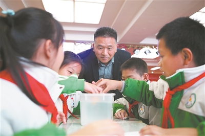 其實,小學科學課是一門多學科、多內容的綜合性課程,想要上好它,頗費心思。劉晉斌每年觀摩課堂教學不下百節,常常為青年教師進行課堂教學復盤,也會做公開教學。他向記者描述了一節好課的模樣——它有趣、生動,層層遞進,抽絲剝繭;它要符合學生所處年齡段的認知特點,也要關注學生在課堂上思維的發展;它要讓學生觀察、提問、探索、動手、討論,要調動和滿足他們的好奇心;整堂課的歷程,要曲徑通幽,最終也要柳暗花明。
