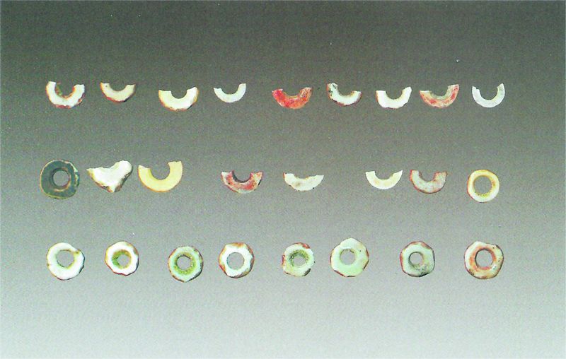 第2地點(diǎn)出土的鴕鳥(niǎo)蛋殼裝飾品。