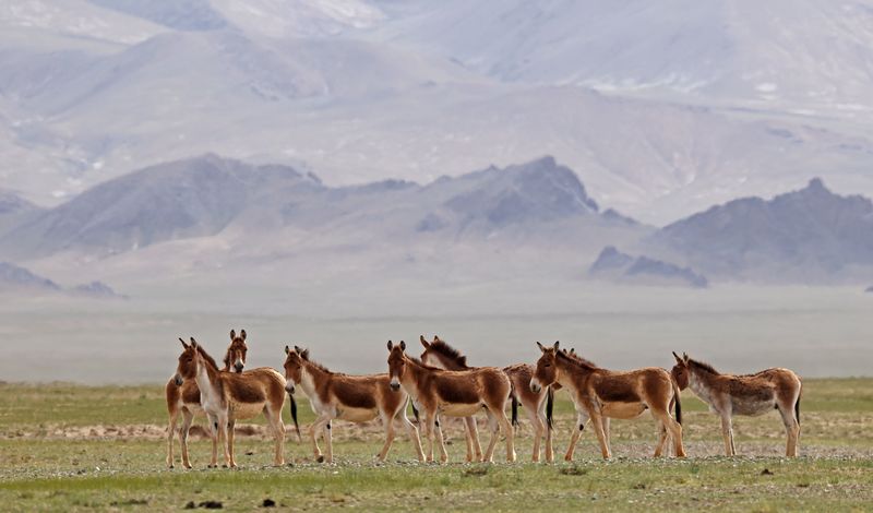 據2022年科考統計,新疆阿爾金山國家級自然保護區有藏野驢約5萬頭、野牦牛近1.2萬頭、藏羚羊約6.5萬只。圖為藏野驢。新華社記者 王鵬?攝