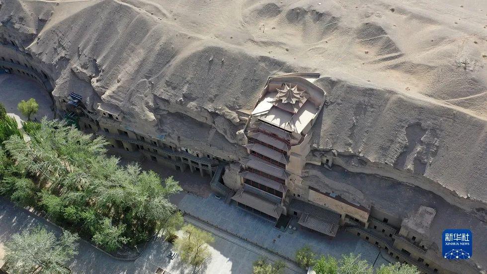 2023年8月9日,游客在莫高窟參觀游覽。新華社記者 范培珅 攝