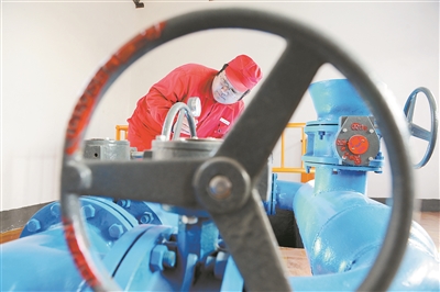 地熱站員工在對利用地熱資源進行供熱的運行設備進行巡檢。視覺中國供圖