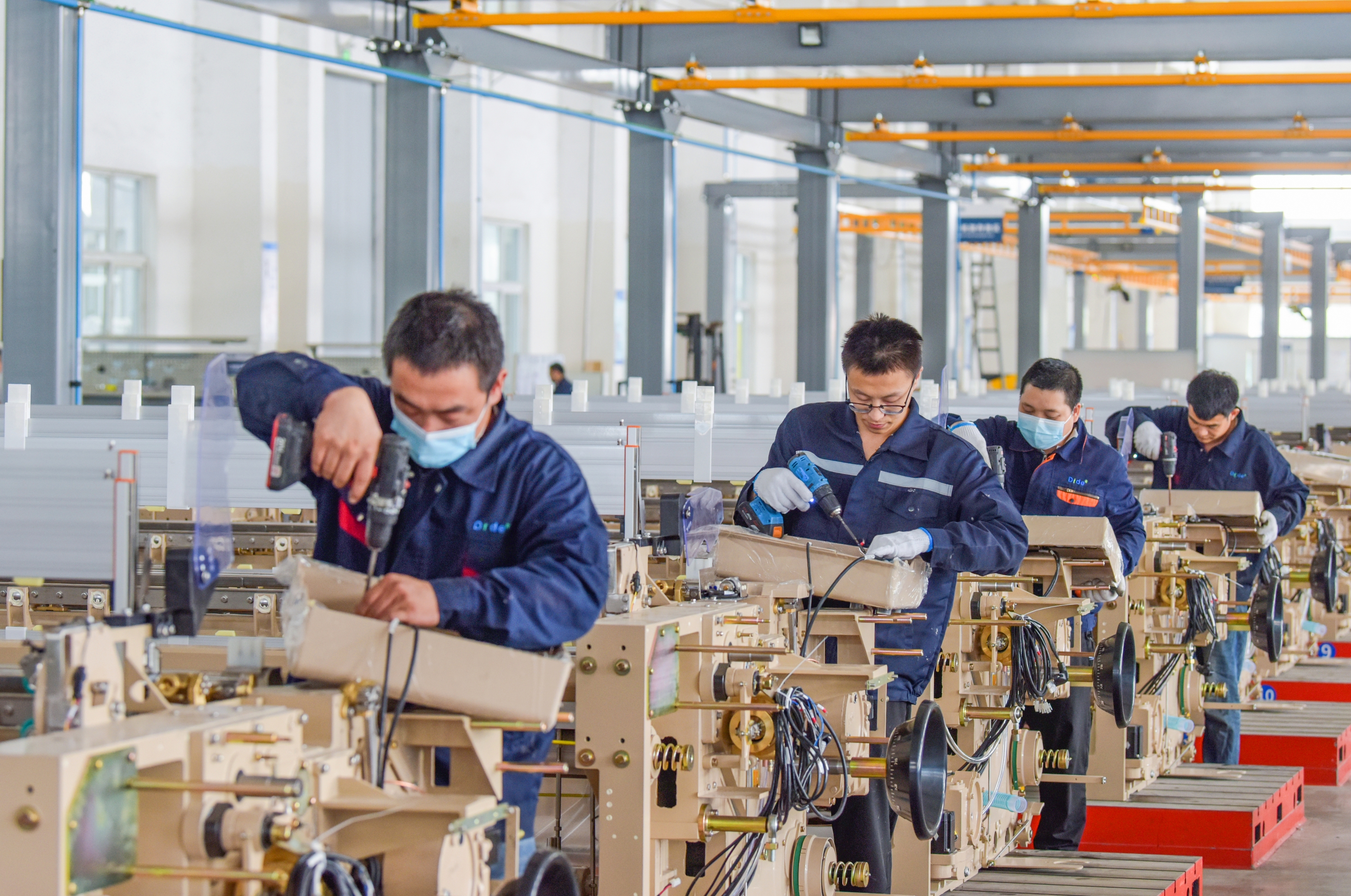 10月7日,記者在青島膠州市洋河鎮(zhèn)的德爾德紡機(jī)智造產(chǎn)業(yè)園看到,工人們正在生產(chǎn)線上熟練地忙碌著,一派繁忙景象。