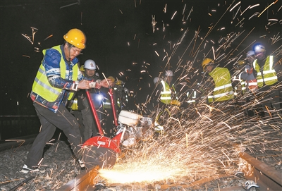 2月2日零時,重慶西站,除少量因春運增加的末班列車仍在渝貴(重慶—貴陽)線運營,其余線路已停運。與此同時,一個預留站臺軌道前一片燈火通明,200多臺鋪軌機械、車輛裝備蓄勢待發。