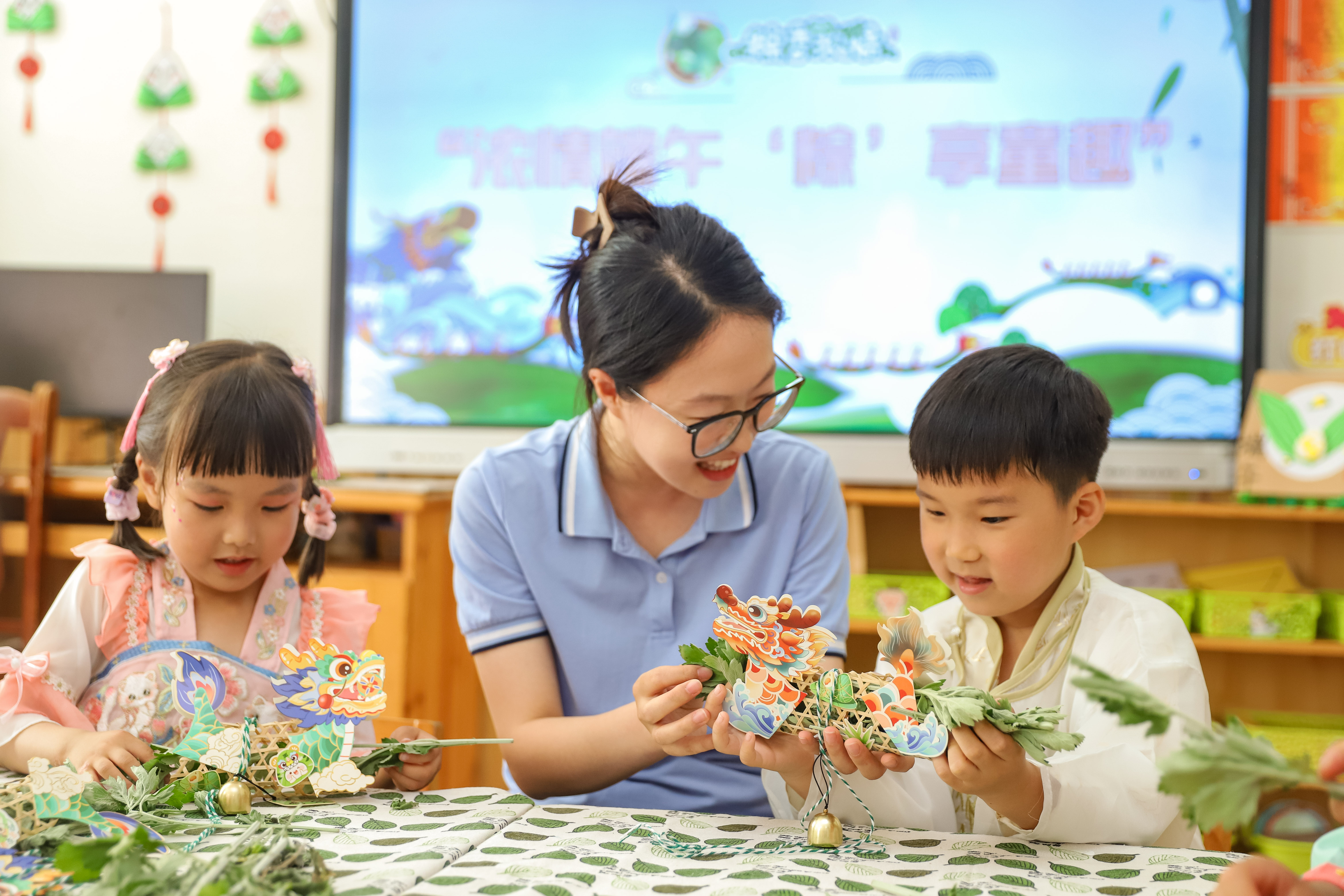 6月6日,青島市李滄區李村街道北山社區文明實踐志愿者走進青峰路幼兒園,開展“濃情端午 ‘粽’享童趣”主題民俗文化體驗活動。