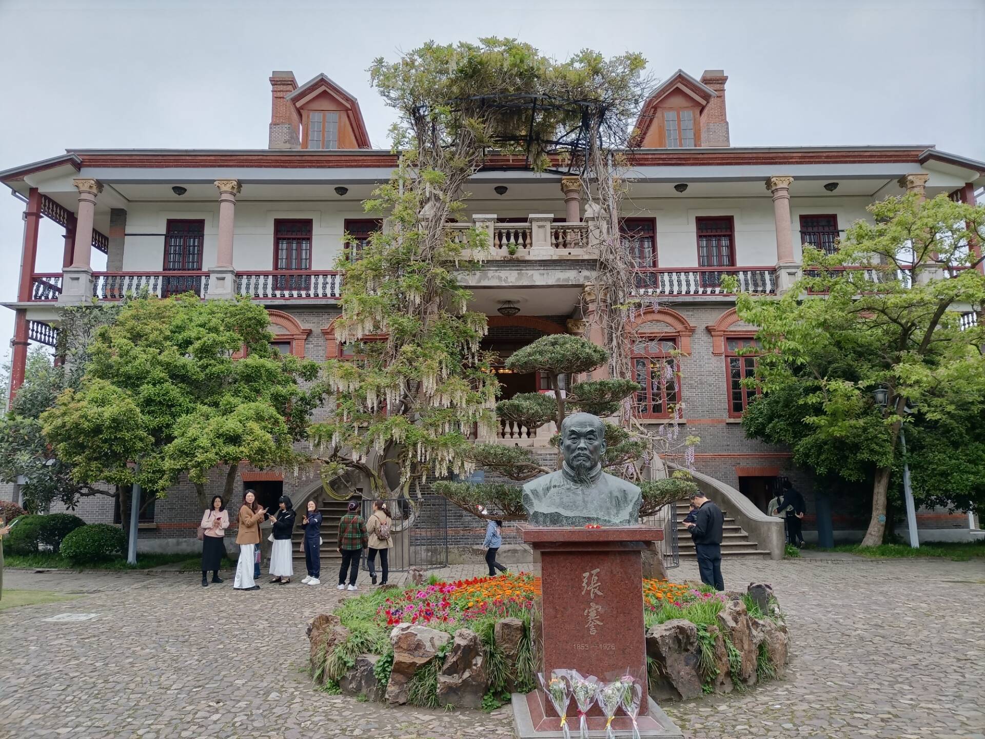 一座仿英式的四層建筑,坐北朝南、氣宇軒昂。在這里,美國(guó)著名哲學(xué)家杜威博士、京劇藝術(shù)大師梅蘭芳、教育家黃炎培曾被奉為座上賓。這里是我國(guó)近代著名實(shí)業(yè)家張謇先生的故居——濠南別業(yè)。21日下午,記者步入這座秀美的江南園林時(shí),張謇的半身像置身于滿園的花團(tuán)錦簇中。
