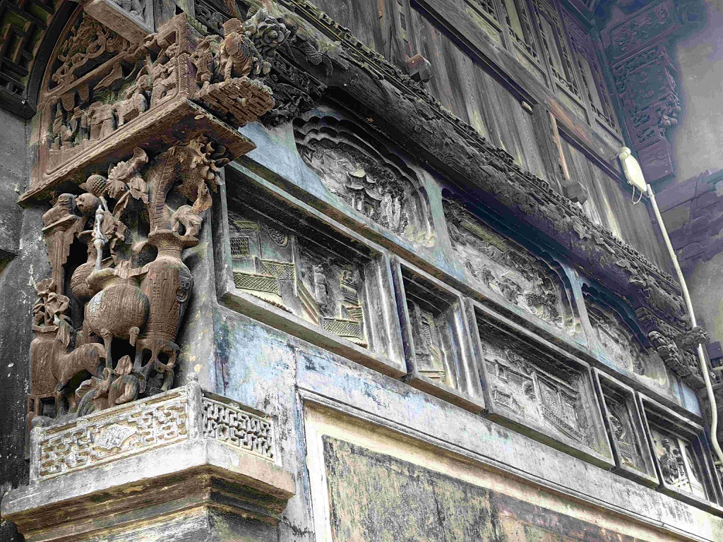 這種安置在屋檐下的木雕,被浙江紹興嵊州市崇仁古鎮(zhèn)的居民俗稱為“牛腿”。它支撐的古建筑房頂建于明清時(shí)代。