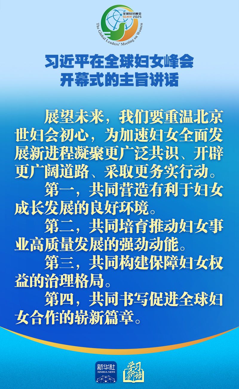 10月13日上午,國家主席習近平在北京國家會議中心出席全球婦女峰會開幕式并發表題為《弘揚北京世婦會精神 加速婦女全面發展新進程》的主旨講話。講話金句,一起學習!