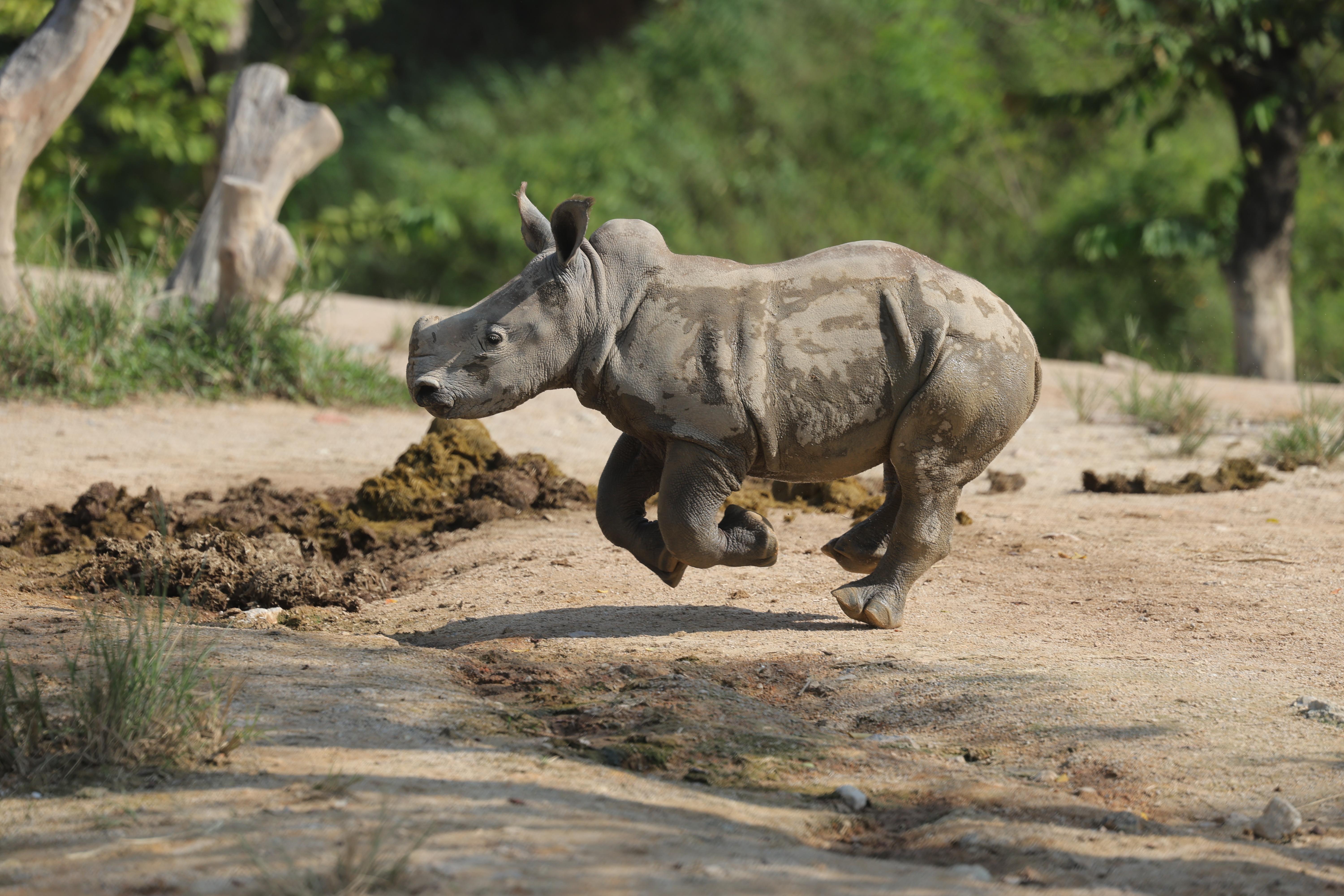 廣東清遠長隆半年內成功繁育三頭白犀牛幼崽