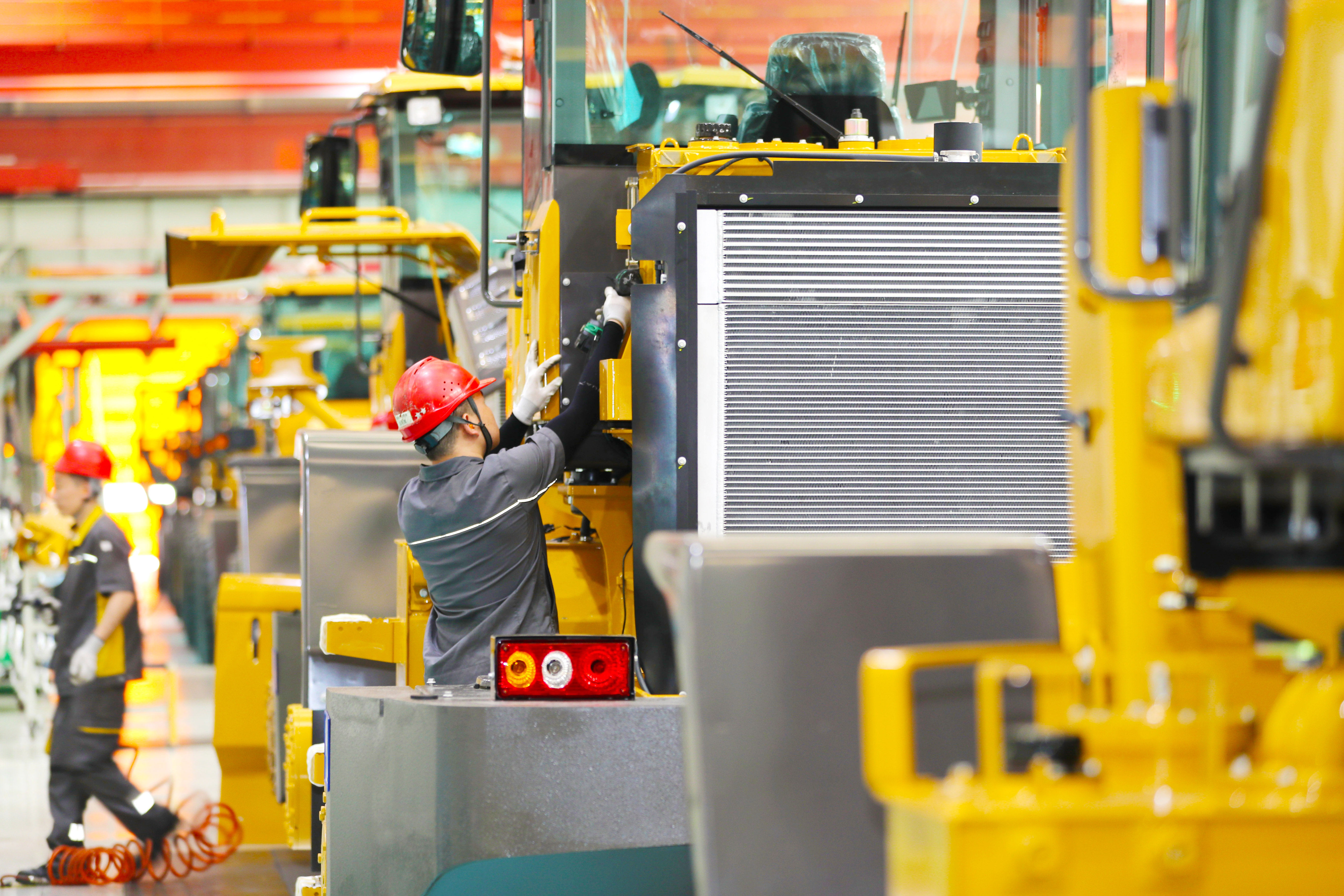 6月14日,雷沃重工集團有限公司的生產車間里,裝載機陸續下線。張進剛 攝