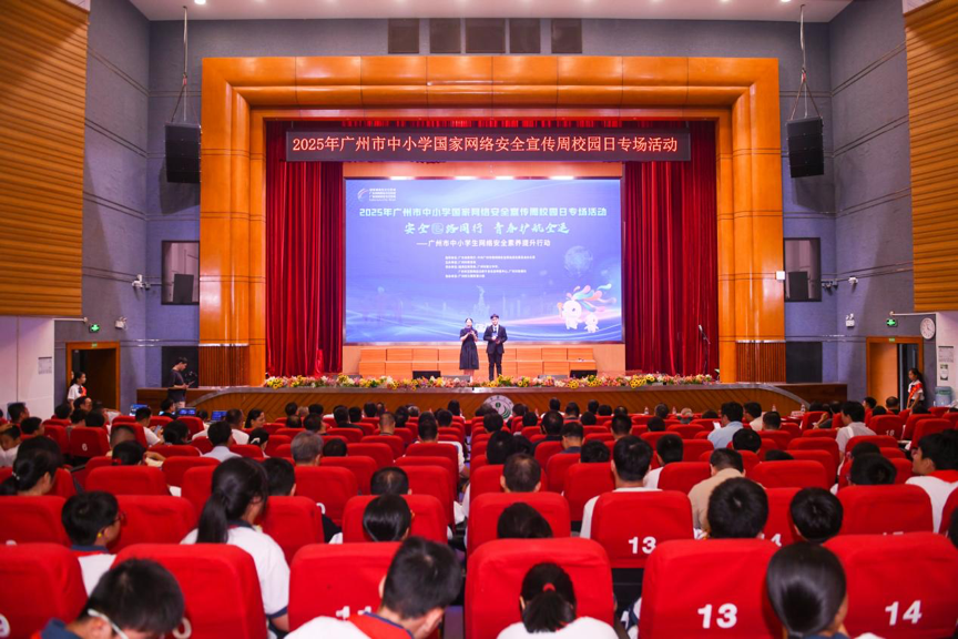 活動當天,廣州市中小學生通過宣讀《校園網絡安全倡議書》,以及舞蹈《網絡安全伴我行》《AI反詐聯盟》、合唱《電子“詐”菜》、詩歌朗誦《網安筑夢?青春護航》、情景劇《網絡素養知多點》等節目,為全場師生帶來了一場生動、創意十足的網絡安全宣傳教育活動。