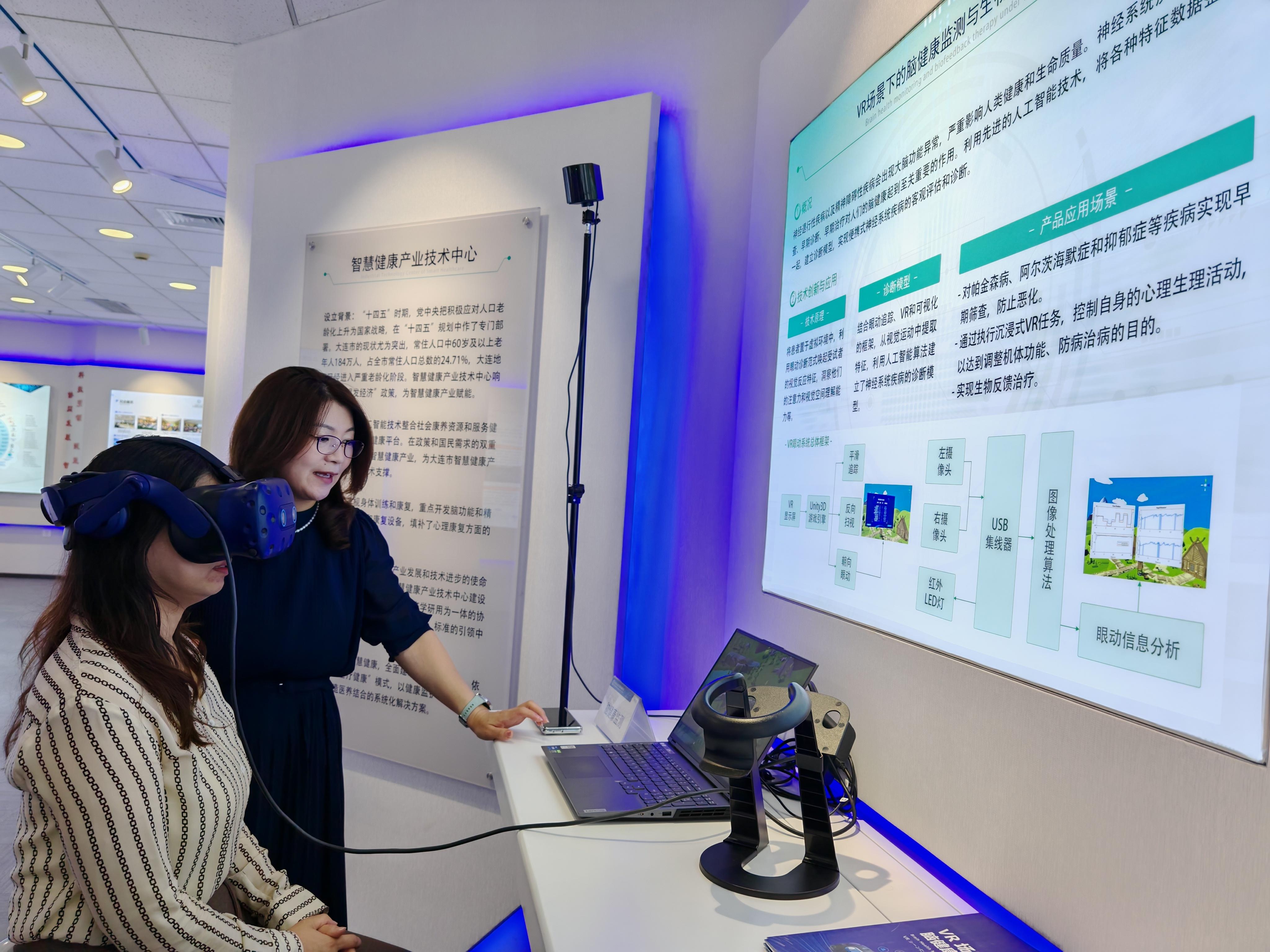 在虛擬現(xiàn)實(shí)的沉浸式場(chǎng)景中,受試者的眼球運(yùn)動(dòng)軌跡被精密捕捉,人工智能算法實(shí)時(shí)分析著眼動(dòng)特征——這不是科幻電影里的場(chǎng)景,而是大連理工大學(xué)人工智能大連研究院(以下簡(jiǎn)稱研究院)研發(fā)的VR腦健康監(jiān)測(cè)儀的工作現(xiàn)場(chǎng)。這臺(tái)看似游戲機(jī)的設(shè)備,正以90%的準(zhǔn)確率篩查著帕金森病和阿爾茨海默病等疾病的早期征兆,成為該研究院推動(dòng)科研成果從論文走向市場(chǎng)的生動(dòng)實(shí)踐。