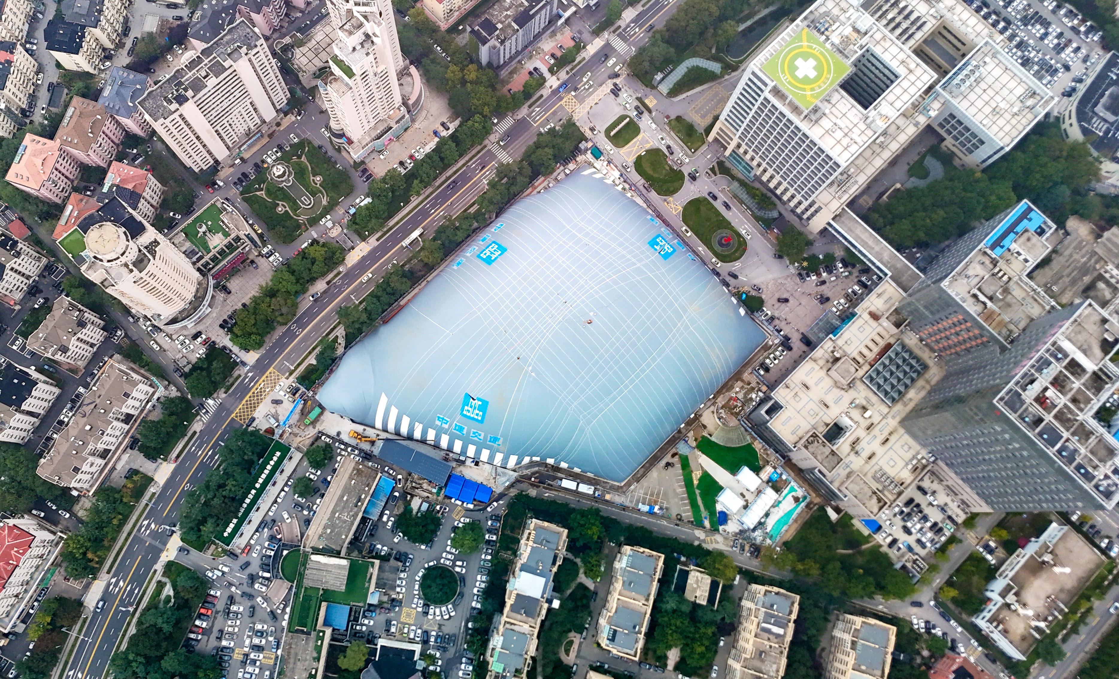 近日,在青島市市南區(qū),一座巨型“空氣城堡”將青島市立醫(yī)院東院區(qū)三期項(xiàng)目罩住。這是由中建交通建設(shè)集團(tuán)有限公司自主研發(fā)設(shè)計(jì)的青島市首個(gè)全封閉式基坑氣承式膜結(jié)構(gòu)。