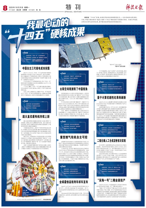 編者按 “十四五”時期,我國在科技創新領域持續發力,一大批突破性成果涌現。日前,科技日報社推出“我最心動的‘十四五’硬核成果”征集展示活動。本版從中遴選出部分具有代表性的成果,集中展現我國科技創新的蓬勃活力。