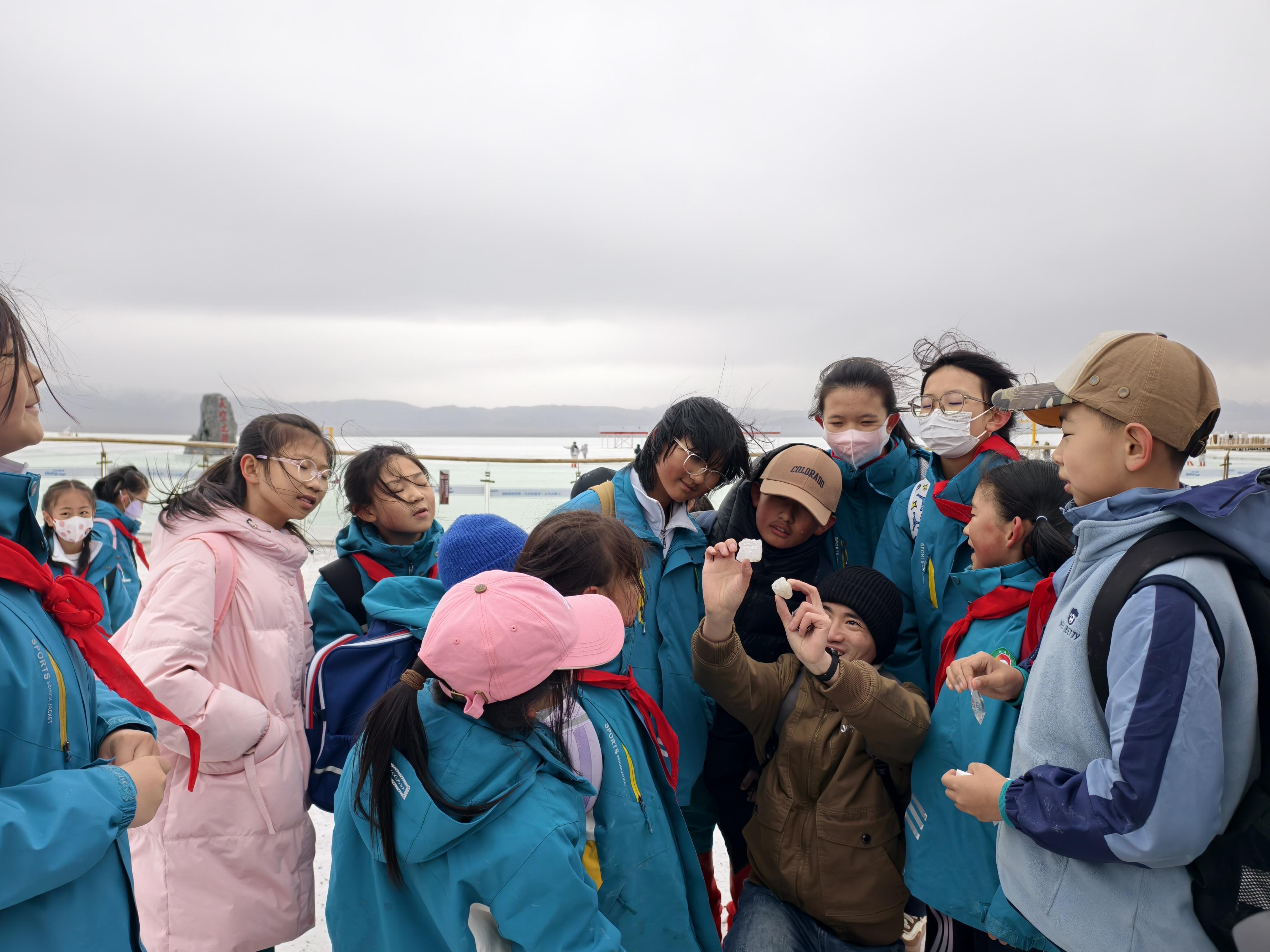 活動(dòng)中,來(lái)自中國(guó)科學(xué)院青海鹽湖研究所的博士宋華玲和黃曦光化身學(xué)生專(zhuān)屬研學(xué)導(dǎo)師,帶領(lǐng)孩子們深入茶卡鹽湖開(kāi)展考察活動(dòng)。