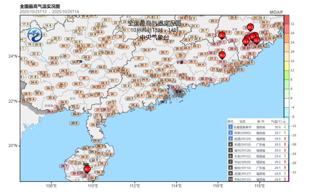 南方尤其是華南地區,今天體感暖和舒服,像廣東、海南、福建等多地午后甚至還有熱意,14時多地氣溫直沖30℃。其中,廣東深圳已官宣入秋成功,是當地1998年以來最早到來的秋天。