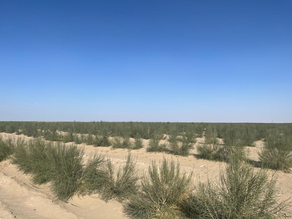 “如果問南疆沙漠環境哪種植物最容易生長,毫無疑問是梭梭和紅柳,特別是梭梭,最適應鹽堿地和含堿濃度很高的地下水,成片的梭梭林不僅阻擋風沙,林下嫁接的肉蓯蓉也帶來可觀的經濟效益……”在沙雅縣蓋孜庫木鄉防沙治沙綜合示范區,指著成片成片的梭梭林,沙雅縣林業和草原局黨組成員、胡楊林保護中心副主任王開彥向記者娓娓道來。