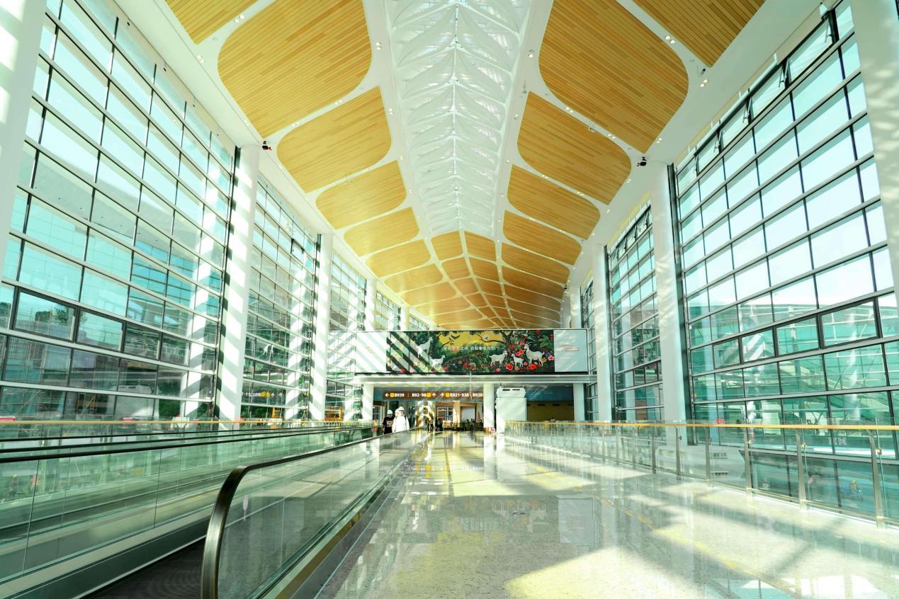 T3航站樓在全國首創全景航空觀景平臺和瞭望塔,是國內首座暖色調大型機場航站樓、首座設立植物園的航站樓,以及國內首個構建大型公共藝術系統、打造旗艦洗手間、建設古樹公園的機場等。