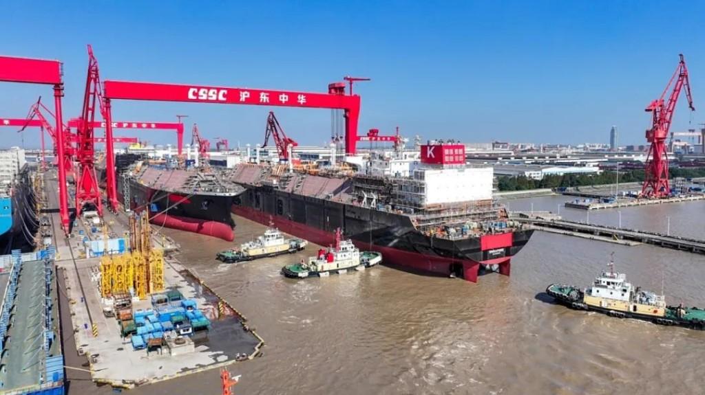 10月11日,滬東中華創下LNG船建造領域新的生產紀錄——首次實現3艘LNG船同日出塢。此次出塢的3艘LNG船皆為第五代“長恒系列”,是滬東中華自主研發的標桿產品。相比上一代船型,該系列通過輕量化設計使空船重量減少1500噸,采用雙艉鰭線型提升航行效率,每個航次可多裝載800立方米液化天然氣。