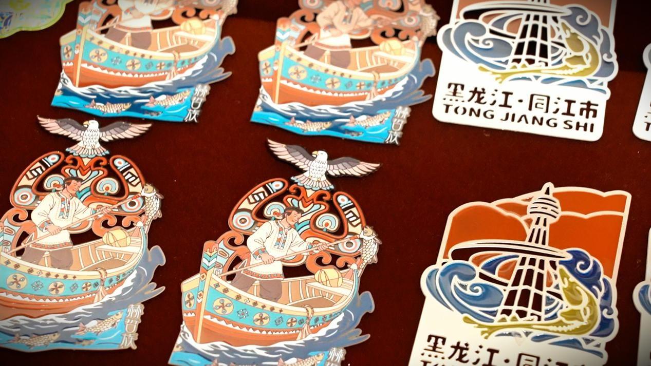 除了魚皮手工藝品,印著同江特色風景的冰箱貼、書簽、水杯等文創產品也成了游客們的“心頭好”,在各大景區的文創商店里時常被搶購一空。