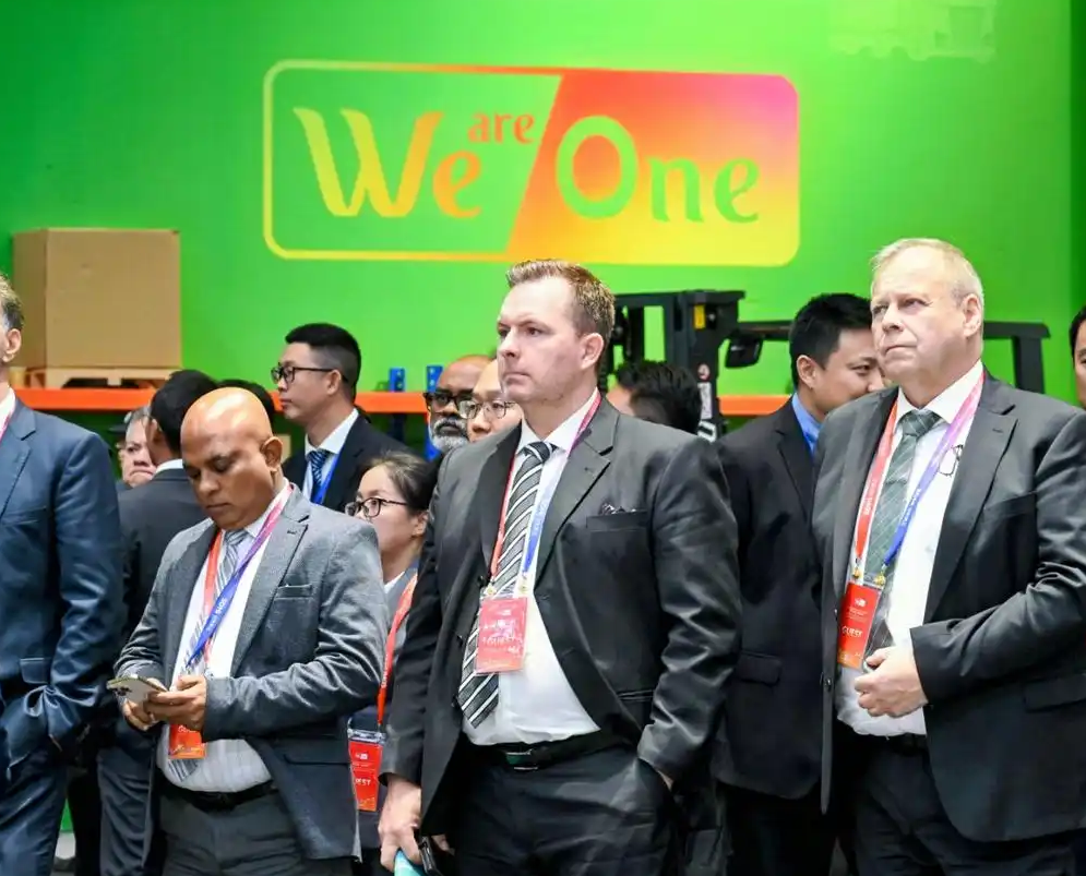 這是山東重工·濰柴動力全球合作伙伴大會上的典型一幕。當天,來自全球140多個國家的近3000名客戶從全球各地趕來,全系列新能源和智能網聯產品吸引了海外市場。