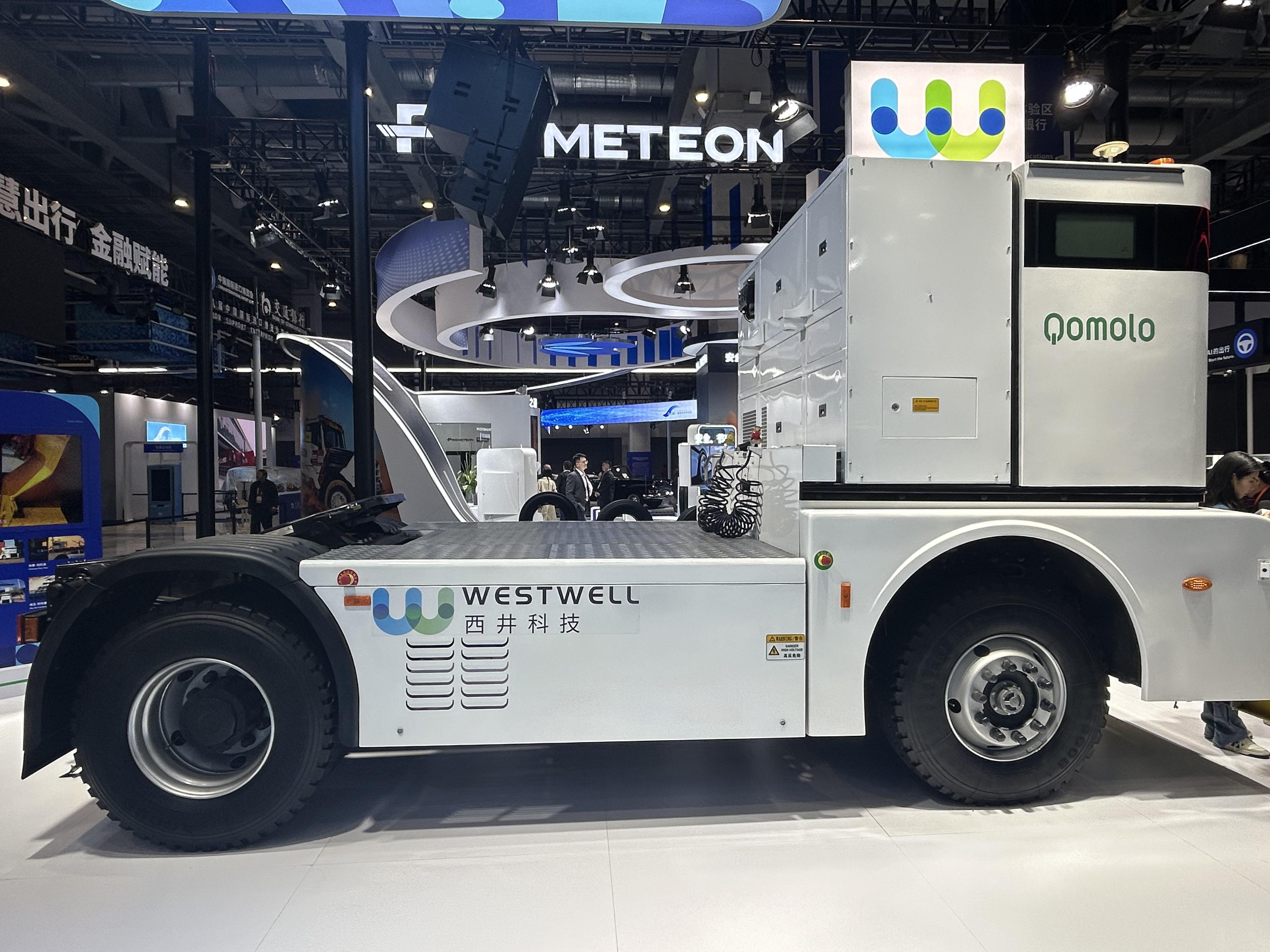 在本屆進博會上海西井科技股份有限公司展臺,因參演《流浪地球2》圈粉無數的明星產品——全時無人駕駛新能源重卡 Q-Truck炫酷亮相。這款采用無駕駛室顛覆性設計的產品,目前已成功出口至阿聯酋、英國、埃及、墨西哥等國。公司公共事務高級經理陳霖告訴科技日報記者,這款產品已在英國菲力斯杜港等港口物流場景實現24小時不間斷作業,以實際運營成果刷新無人駕駛規模化應用成效。