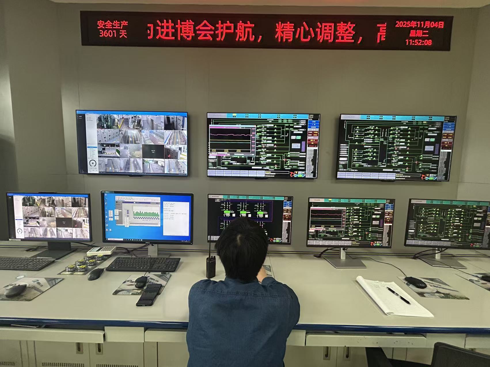位于進博會主會場僅200米的華電上海國家會展中心(上海)能源站,集合了分布式電熱冷耦合、余熱余壓利用等先進技術,連續八屆為會展中心提供冷、熱等多種能源,綜合能源利用效率達80%。自10月30日15時以來,能源站配合國家會展中心運用智能化手段,先后多次對核心區六大區域進行供能管網測試、控溫演練、降溫循環。華電福新能源有限公司運行維護部主任左蘭波介紹,“進博會期間,我們已全面做好全時段、全天候的供能保障準備。”